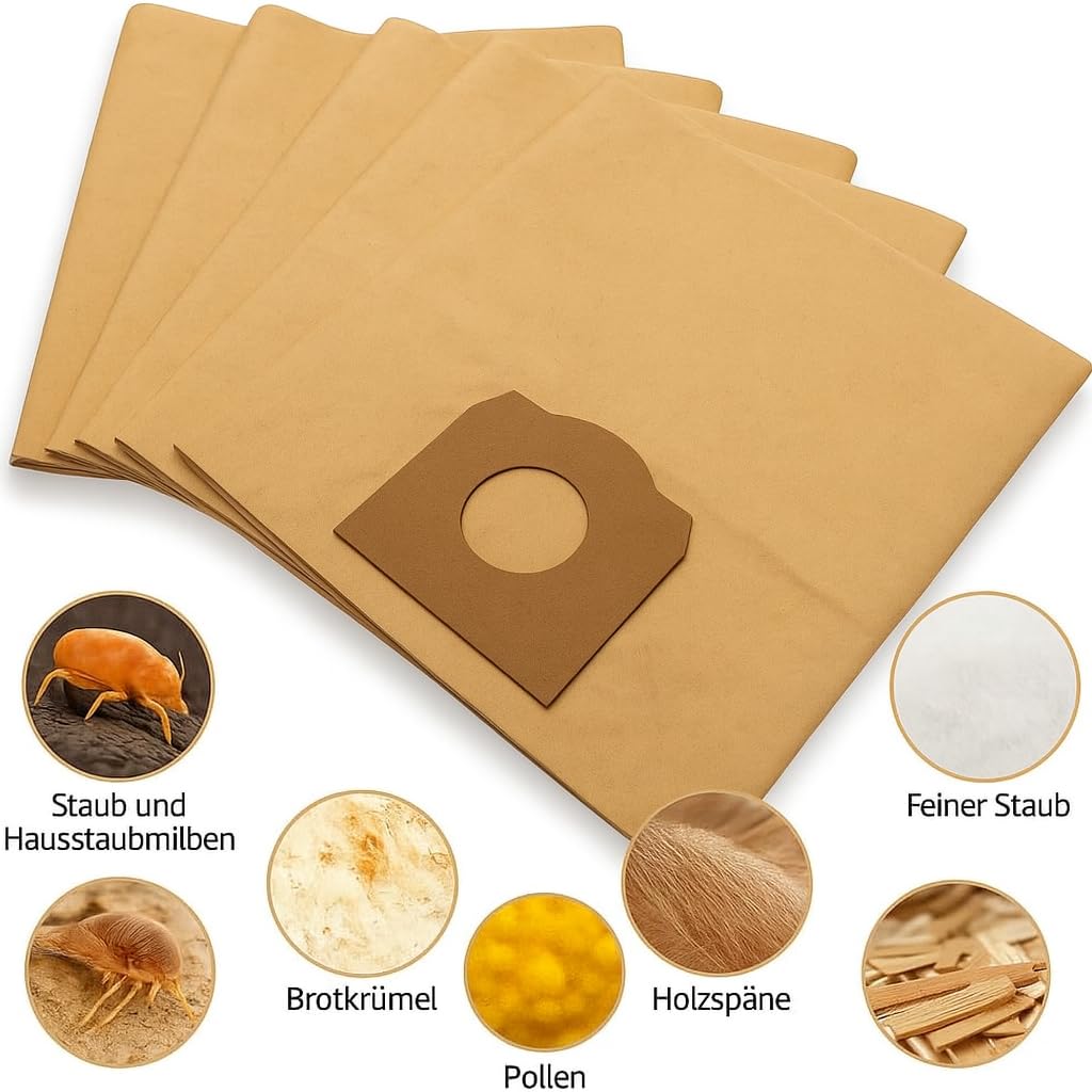Filtration efficace de la poussière et puissance d'aspiration constante. Ils sont compatibles avec les modèles BT-VC 1500 SA, TE-VC 2230 SA, TH-VC 1930 SA, RT-VC 1600 E et INOX 30A. La structure fine des pores du papier filtre de manière fiable les poussières fines, la saleté et les grosses particules. Contenu : 5 Sacs à poussière (4,98 € * / 1 Sacs à poussière) ; Réf. d'article : SW-38495 ; EAN: 4054288704958 ; Sacs d'aspirateur assortis Adapté à votre 5x SCM... Cela rend les sacs particulièrement pratiques pour les utilisateurs qui apprécient une manipulation propre et simple. Cela empêche la poussière de s'échapper et assure une manipulation confortable et propre au quotidien. TE-VC 2340 SAC TE-VC 2230 SAC TE-VC 2340 SA. 16,49 €. sur eBay. Aller sur la boutique · 5X Sacs À Poussière Pour Einhell BT-VC 1500 SA TE-VC 2230 SA INOX 30A... Ce produit est proposé par la marque M&M Smartek de Hattersheim, en Allemagne. Grâce à l'ouverture de raccordement fabriquée avec précision, les sacs restent bien en place, ce qui empêche le glissement pendant le fonctionnement et garantit une utilisation fiable. Aspirateur Travaux 5x Staubsaugerbeutel Passend Für Einhell BT-VC 1500 SA, TE-VC 2230 SA, TH-VC 1930 SA, RT-VC 1600 E, INOX 30A | 30L Papier-Filterbeutel Von M&M Smartek Lot 5 Sacs Aspirateur Même lorsqu'ils sont pleins, ils restent étanches et empêchent les déchirures ou les fuites incontrôlées de la saleté. Grâce à l'ouverture de raccordement précise, les sacs peuvent être facilement insérés et garantissent un maintien sûr tout au long de l'utilisation., Dimensions : 40 x 40 cm. Le kit garantit qu'un sac de rechange est toujours à portée de main et évite les interruptions de nettoyage causées par le manque d'accessoires. Ainsi, les utilisateurs sont parfaitement équipés pour les travaux de nettoyage récurrents dans la maison, l'atelier, le garage, sur les chantiers de construction ou pour l'entretien du véhicule. Cela contribue non seulement à un résultat de nettoyage plus approfondi, mais protège également le moteur de l'aspirateur, car moins de poussières fines pénètrent dans l'appareil et prolonge ainsi la durée de vie. Lot de 5 sacs pour nettoyage régulier : 5 sacs d'aspirateur d'une capacité de 30 litres chacun sont inclus. Facile à utiliser et à éliminer. Cela les rend idéaux pour une utilisation intensive dans la maison, le garage, l'atelier ou sur le chantier. Fabriqués à partir de papier spécial multicouche, les sacs d'aspirateur offrent une grande résistance à la déchirure et une stabilité dimensionnelle. Sacs d'aspirateur compatibles avec les aspirateurs secs et humides Einhell. Ces sacs de rechange de qualité supérieure ont été spécialement conçus pour les aspirateurs Einhell d'une capacité de 30 litres et convainquent par leur ajustement précis. Ainsi, la puissance d'aspiration de l'aspirateur reste constamment élevée, même si le sac est déjà bien rempli. Aspirateur-balai sans fil Einhell TE-SV 18 Li-Solo Power X-Change - Puissant et sans sac Que ce soit à la maison, lors de rénovations, dans l'atelier ou pour l'entretien du véhicule, avec ce kit, vous êtes toujours prêt.