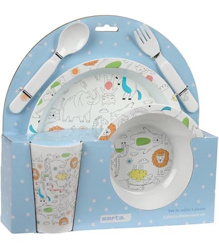 Couverts Initiation Repas Sac à Dos - SAFTA - PREESCOLAR KOALA - Confortable - Polyvalent - Idéal Set Couverts Enfant Safta Set Repas Bébé Safta PREESCOLAR ZOO - Set D'assiettes Et Couverts Assiette, bol, verre, couvert, ils sont plus pratiques et plus économiques. Un set-repas permet aussi de garder une certaine cohérence du style... À propos de Safta : Safta S., A. Nous sommes certifiés ISO 9001, ce qui nous confère le statut d'entreprise de qualité dans le cadre européen, et nous certifie en tant qu'entreprise respectueuse de l'environnement. Design unique : présenté dans un ensemble en carton Technologie : Safta offre la plus haute qualité dans tous ses produits grâce à la haute technologie et à la recherche de nos professionnels depuis 1908., Connaître les dernières tendances nous permet d'incorporer de nouveaux modèles et matériaux dans nos collections, afin de nous adapter à tout moment aux besoins des consommateurs. Contenu : assiette creuse, assiette plate, cuillère et fourchette Tous les publics : idéal pour les enfants de tous âges Résistance et durabilité : ce produit est spécialement conçu pour sa durabilité, fabriqué avec des matériaux de haute résistance pour garantir qu'il peut être utilisé dans tous types d'activités, garantissant sa fonctionnalité SET DE PLATOS, CUBIERTOS Y VASO SAFTA PREESCOLAR SELVA | Comprar...