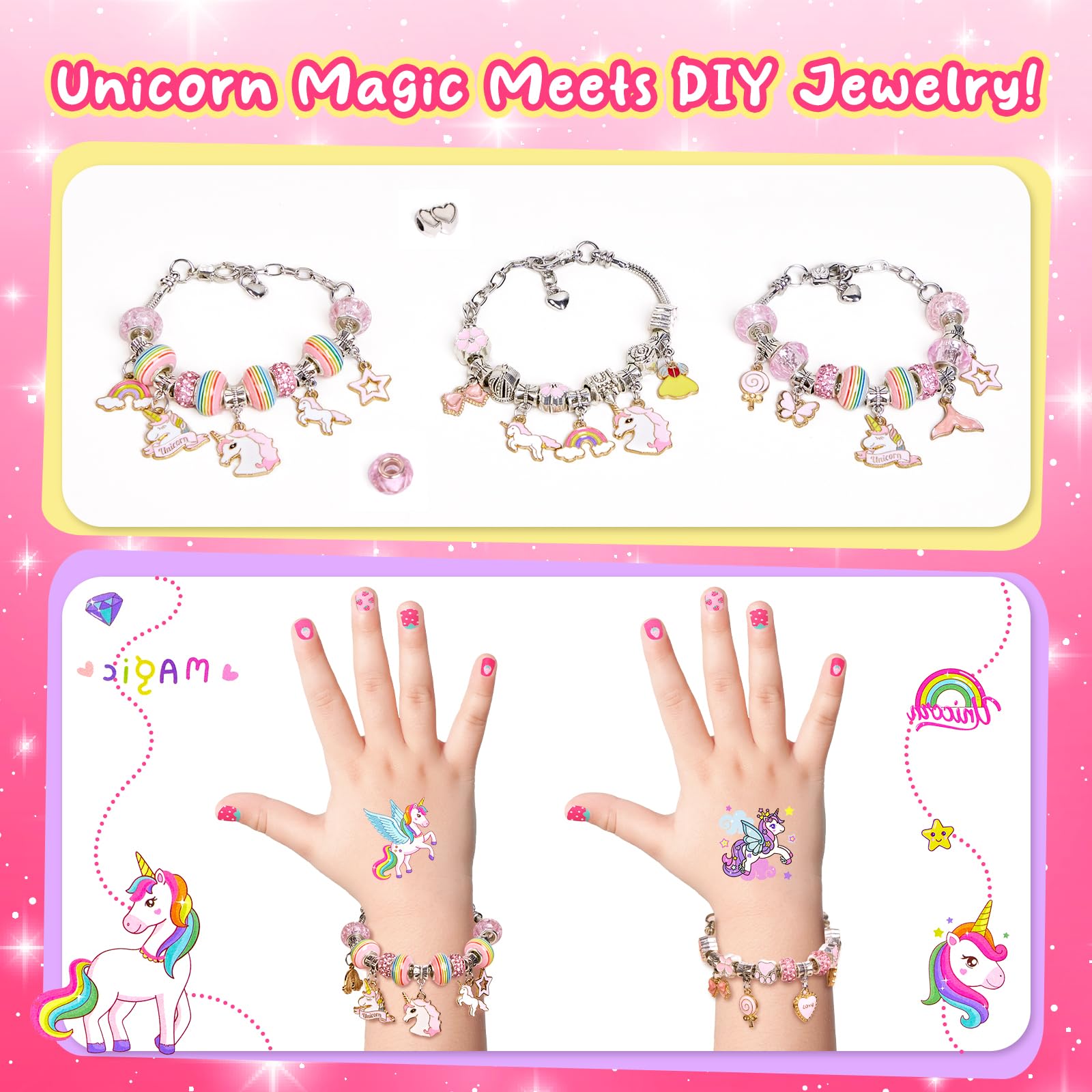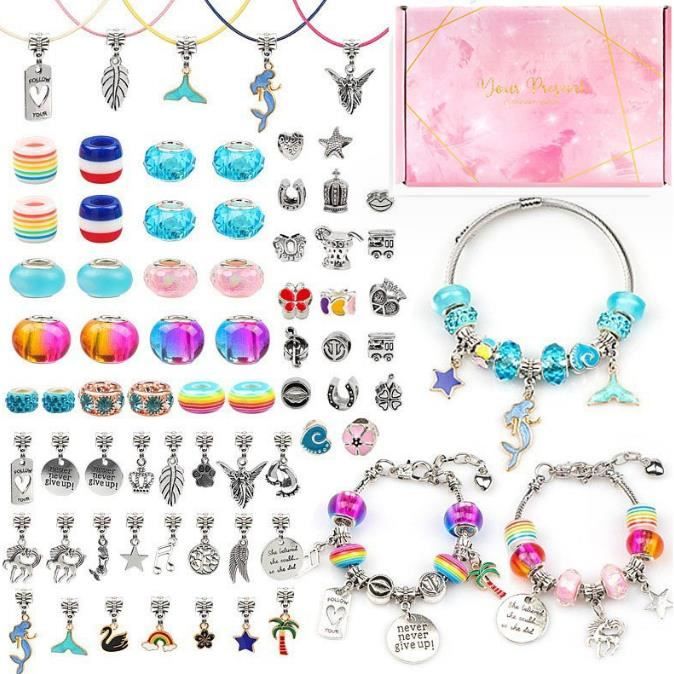 Tomylv Cadeau Fille 5-13 Ans, Kit Création Bijoux DIY Charms Bracelet, Jouet Enfant Idée Cadeau 5 6 7 8 9 10 11 12 13 Ans C’est une activité ludique et éducative qui favorise la dextérité, la patience et la créativité. Sur , retrouvez une sélection de jeux de création de bijoux pour filles, idéals pour des moments de détente et de partage en famille Jeux Créatifs Fille Anniversaire SASUKI Jouet Cadeau Fille 4-13 Ans Charms Bracelet Kit Bijoux Enfants Cadeau Créatif Licorne Perles Scintillantes 🎀 Kit complet avec adorables accessoires à thème Ce kit de bijoux enfants fille comprend 16 perles métalliques brillantes, 16 perles en cristal scintillantes et 12 charms mignons représentant les motifs préférés des enfants : licorne, robe de princesse, papillon, cœur, sucette, étoile, nœud, arc-en-ciel, fleur, queue de sirène et plus encore. 🎨 Créer, jouer et s’amuser en toute créativité Les enfants peuvent créer leurs propres bijoux personnalisés tout en développant leur imagination. Cadeau Fille 5-13 Ans Jouet Fille Calendrier de lAvent de Noël Enfa... Inclus également : 2 bracelets réglables (16+5 cm), 3 colliers réglables (45+5 cm), 1 planche de stickers pour ongles, 2 planches de tatouages temporaires licorne, 1 jolie boîte cadeau rose et 1 carte explicative. Parfait pour jouer seul ou entre amis – une activité manuelle ludique et enrichissante ! Ce bijoux enfants fille DIY allie créativité, fierté et plaisir – une surprise inoubliable pour chaque petite créatrice ! ✨ Matériaux sûrs et de haute qualité Tous les éléments sont fabriqués à partir de matériaux non toxiques, solides et sans bords tranchants – parfaitement adaptés aux petites mains des enfants.