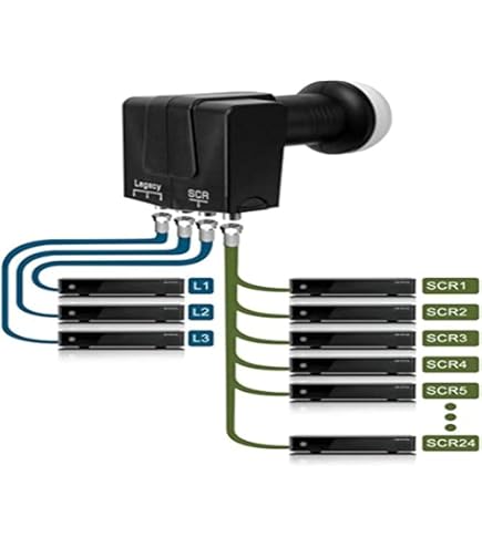 TechniSat Universal SCR 4+4 LNB Convertisseur Satellite Multi-tuner TechniSat Universal SCR 4+4 LNB - 4 Participants And 4 Other Via SCR Lnb Diseqc Unicable Pour Multi Récepteurs Avec un diamètre de feed de 40 mm et un filtre LTE intégré, cet appareil offre une excellente qualité de signal et réduit les interférences. Il prend en charge jusqu'à quatre sorties SCR, permettant une distribution flexible des signaux satellite à plusieurs utilisateurs TechniSat LNB SCR 4+4 universel Avec le convertisseur de signal, vous pouvez fournir jusqu'à 4 participants via un câble coaxial et 4 autres participants via des sorties universelles... Contenu de la livraison : TechniSat Universal SCR 4+4 LNB Avec le convertisseur de signal, vous pouvez fournir jusqu'à 4 participants via un câble coaxial et 4 autres participants via des sorties universelles