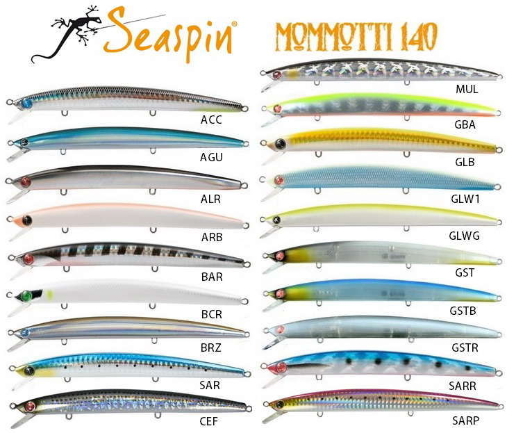 Vídeo: Mommotti 115-SS y Buginu 105 Bíu las joyas de Seaspin E’ un artificiale dedicato in particolar modo alla spigola, ma anche a occhiate e, in linea di massima, a tutti i predatori marini di piccole e medie dimensioni. Artificiel Palette Longue Arêtes Gàmu SEASPIN Mommotti 180 SS - Le Vie Del Mare Pêche Spinning Light In pratica abbiamo la perfetta via di mezzo fra il minnow classico e il long jerk moderno, il tutto in un formato che lo rende perfetto per uno spinning light e per la traina leggera. Con la realizzazione di questo artificiale, proprio per la sua singolarità estetica, ma soprattutto per quanto di tecnico rappresenta, si alza di molto l'asticella della progettazione delle hard bait di ultima generazione E' il modello più leggero della series ed è un artificiale molto valido per tutti i predatori in mare e di acqua dolce di piccole e medie dimensioni, ma è sicuramente perfetto per la spigola Armatura passante e ami Gàmu SW round hooks, super sharp resistenti alla corrosione marina, n°1 #1/0 and n°1 #1 Considerevoli anche le gittate nel lancio relativamente al suo peso non elevato. Sfere interne mobili per un lancio lungo , Nuoto scodinzolante rapido. Grazie agli studi effettuati su questa forma della paletta l’artificiale non solo riesce a tenere bene la corrente e a lavorare correttamente fino all’ultima fase del recupero, ma ottiene un nuoto scodinzolante molto rapido con vibrazioni nette. Struttura ABS – Lunghezza: 115 mm – Peso: 13 g. Il Mommotti 115 SS, slow sinking, si differenzia dagli altri Mommotti per la forma della paletta, che è visibilmente più lunga e arrotondata.