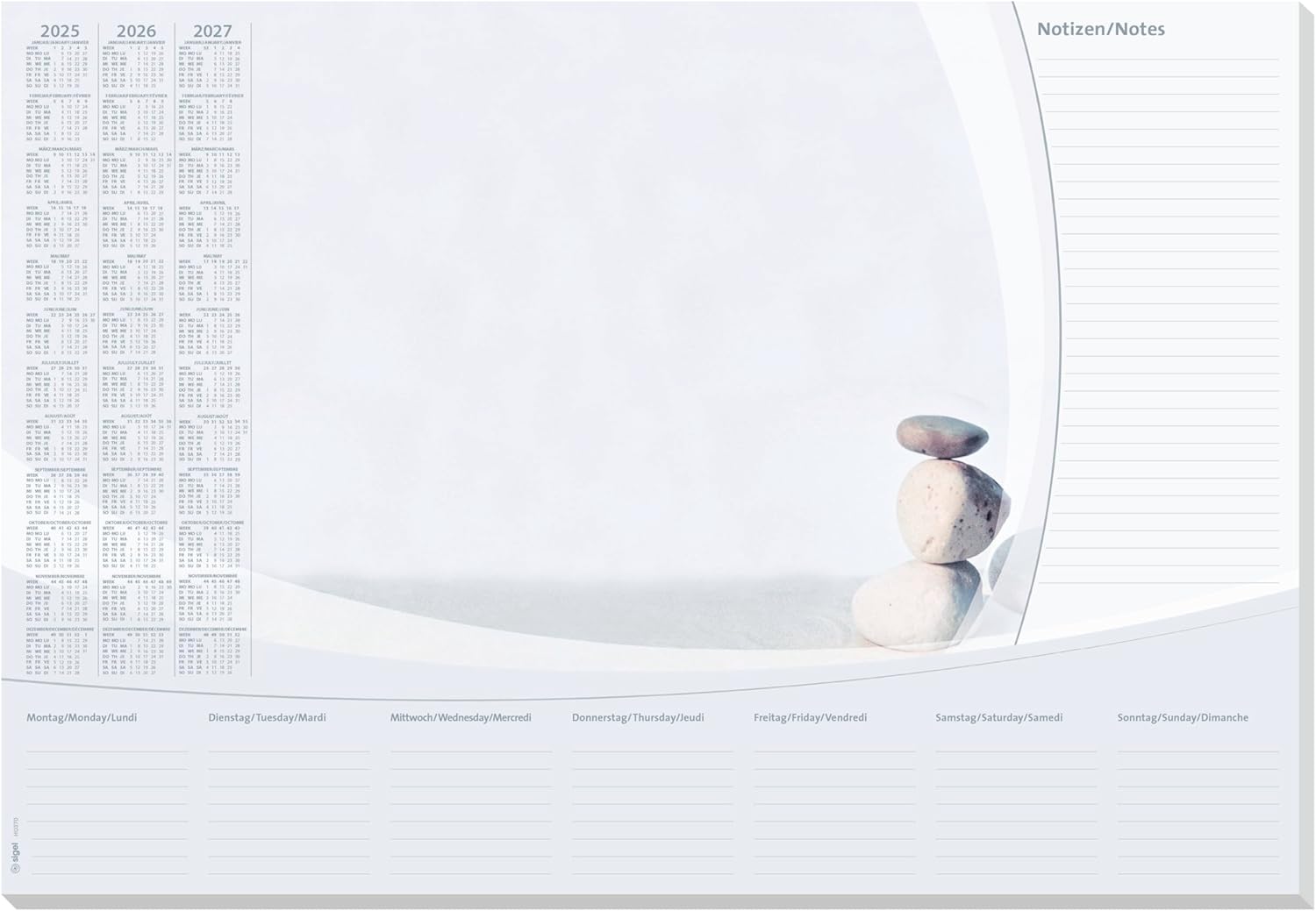 Le sous-main offre beaucoup d'espace pour prendre des notes, pour noter vos idées, vos rendez-vous et vos tâches à faire. Le dos en carton robuste et anti-dérapant ainsi que l'encollage spécial en pied et en tête garantissent une parfaite planéité du sous-main et évite de corner les feuilles. fourni avec: 1x Sous-main papier H6370, 30 feuilles Format idéal qui convient à chaque bureau : attire le regard et protège contre les rayures et les taches Sous-main Sigel Harmony - Format A2 - Avec Calendrier 2026 2027 2028 Si H6370 Vous pouvez utiliser ce sous-main comme un bloc détachable. vos avantages: Bloc papier de qualité premium à feuilles détachables en papier de haute qualité (80 g/m², certifié FSC) SIGEL Bloc sous-mains papier A2 20 feuilles à colorier: Méga pense-bête... TAILLE IDÉALE : bloc papiers large au format DIN A2 (59,5 x 41 cm) avec 30 feuilles détachables - protège le bureau des rayures, des taches et de l'abrasion Qualité made in Germany - le sous-main papier Harmony avec calendrier 2026/2027/2028 (DE/EN/FR) en format environ A2 (59,50 x 41 x 0,40 cm) sert de protège-bureau, doté de 30 feuilles, il offre beaucoup d'espace pour prendre des notes et présente une grande longévité. Les sous-mains design et haut de gamme SIGEL apportent longtemps de la joie dans votre lieu de travail. Sous-main Détachable Format A2 59.5x41 Cm SIGEL HO366 Sous-main, Bloc Papier, Calendriers Sur 2 Ans Et Semainier Protection Bureau Prise Notes Bloc-notes détachables avec : disposition jour-semaine ou disposition semaine-heure - format 59,5 x 41 cm. Les blocs-notes sont fabriqués à 100 % en papier recyclé, inscriptibles avec un calendrier actuel Ce sous-main Harmony avec calendriers sur 3 ans (2026/2027/2028) et semainier vous permet de vous bien organiser