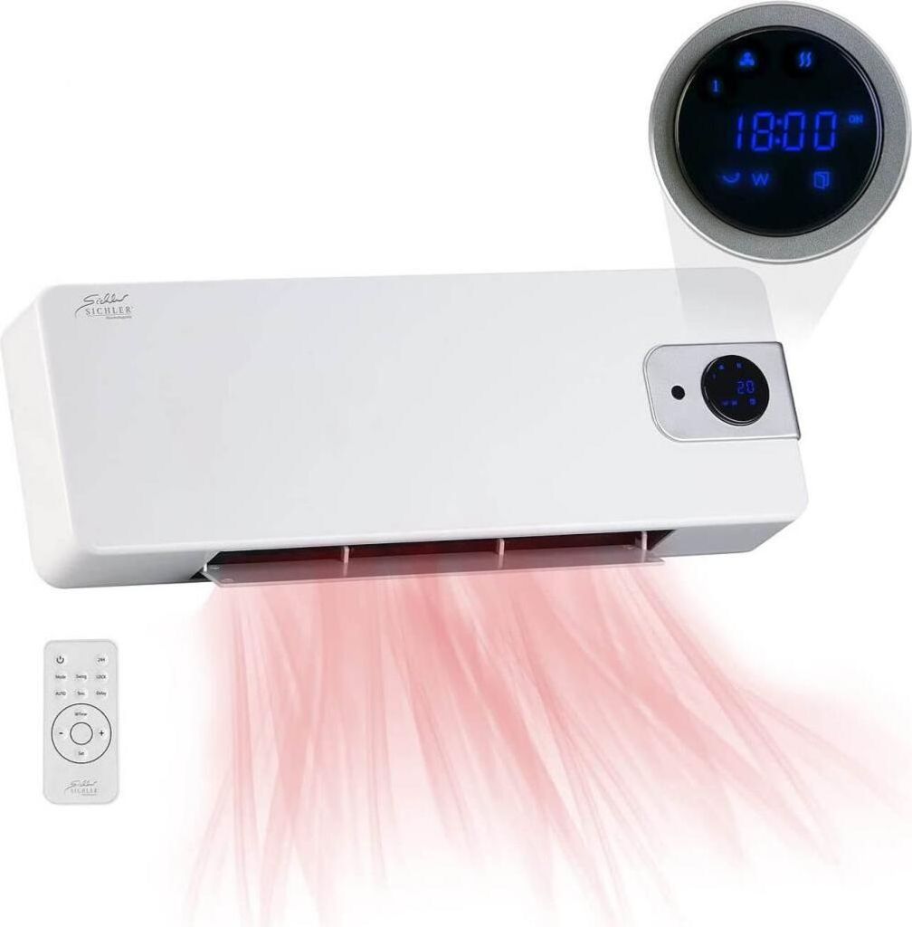 Faible absorption d'eau les carreaux de céramique pour les murs extérieurs - Chi Aérotherme mural avec technologie céramique de 2000W. Equipé d un affichage numérique, d une télécommande et d une minuterie 24 heures et hebdomadaire. Thermostat réglable avec 2 niveaux de puissance : puissance minimale 1000W et puissance maximale 2000W. Il dispose également d une fonction de ventilation : il est donc confortable même en été ! Il dispose d une protection contre les... Chauffage Salle De Bain IPX2 SILVERCREST(R) Radiateur Soufflant Mural En Céramique SKWH 2000 A2 Radiateur Soufflant Salle De Bain Mural Aérotherme mural avec technologie céramique de 2000W. Il dispose d'une protection contre les éclaboussures IPX2, utile pour utiliser le chauffage dans les salles de bains. Radiateur soufflant mural, 2000 W, avec minuteur 12 h, télécommande... Thermostat réglable avec 2 niveaux de puissance : puissance minimale 1000W et puissance maximale 2000W. Conçu avec la technologie céramique (PTC) qui offre une plus grande efficacité et sécurité grâce à sa capacité à autoréguler la puissance de sortie en fonction de l'augmentation de la température. Capable de chauffer efficacement 20 m2., SÉCURITÉ : Ce radiateur est équipé d'une protection contre la surchauffe qui éteint automatiquement l'appareil en cas de surchauffe. De plus, la chaleur se propage rapidement jusqu'au point souhaité.