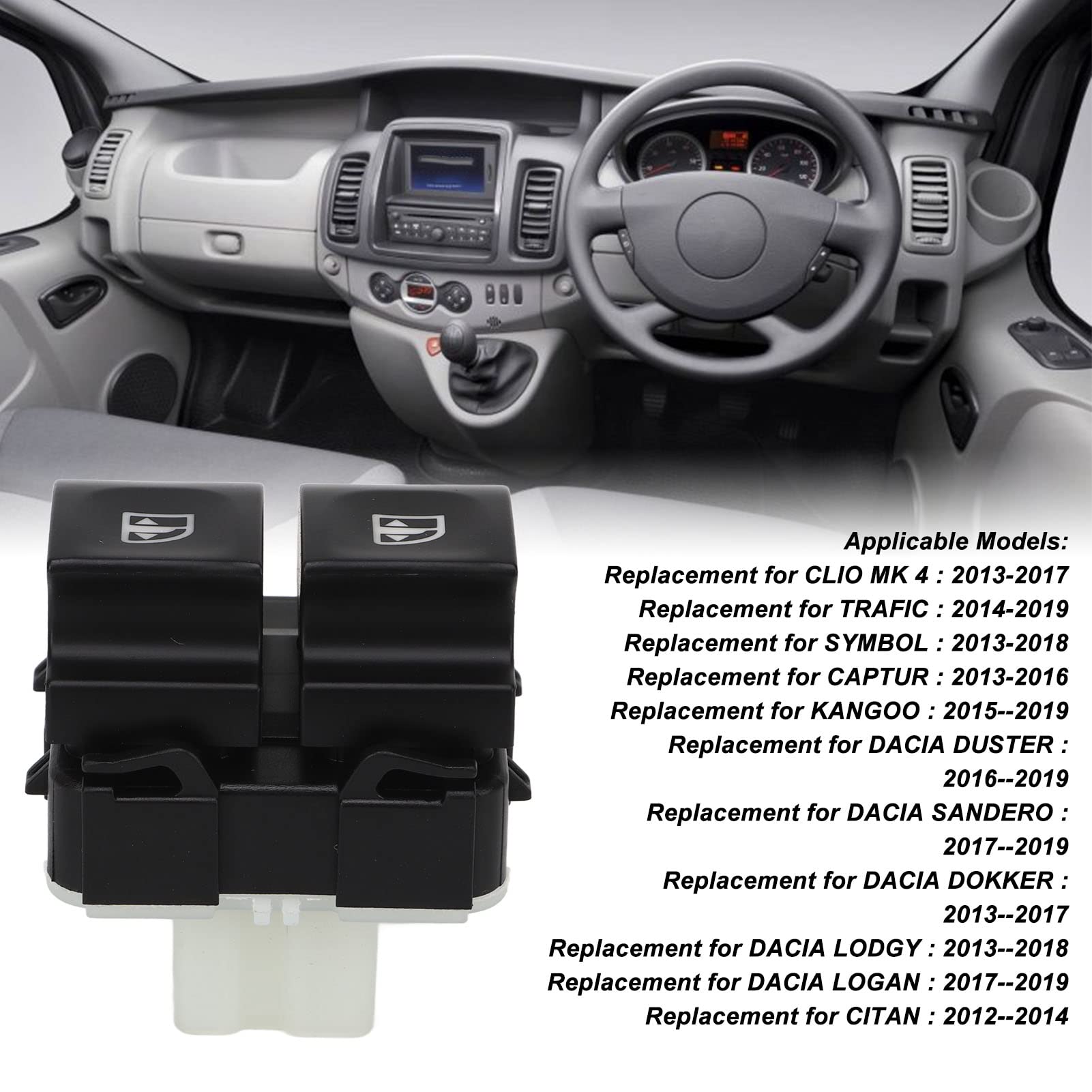 [Remplacement facile] Interrupteur de vitre électrique compatible avec Clio mk 4, trafic, symbol, Remplacez le numéro de pièce 254118044r par un bon ajustement. Interrupteur Maître Trafic SJLERST Commutateur De Fenêtre électrique 254118044R, Réponse Interrupteur Abs Tactile Réactif Description du produit Commutateur de Fenêtre électrique 254118044R Bouton de Commande électrique Maître Réactif Compact Remplacement Tactile Confortable CLIO MK 4 à 2017,Vêtements de yoga/fitness Remplacement idéal : haute précision et ajustement parfait pour répondre à vos besoins, vous permettant de remplacer directement l'original endommagé Remplacez le numéro de pièce 254118044r pour un ajustement . [Ajustement ] La conception de haute précision garantit le remplacement direct de votre interrupteur d'origine. Interrupteur de leve vitre avant gauche RENAULT CLIO 4 PHASE 1 254118044R · Achat immédiat. Bouton, interrupteur ORIGINE lève vitre Renault 254118044R, Clio 4... [Remplacement facile] Interrupteur de vitre électrique compatible avec Clio mk 4, trafic, symbol, captur. Caractéristiques : [Longue durée de vie] Profitez d'un interrupteur fiable qui ne se déformera pas ou ne se pliera pas avec le temps. [Contrôle réactif] Contrôlez facilement votre fenêtre pour un confort de conduite amélioré. Akozon commande de fenêtre électrique Commutateur de vitre électrique [Bon matériau] Fabriqué en matériau ABS solide et léger pour une longue durée de vie., utilisation. [Longue durée de vie] Profitez d'un interrupteur fiable qui ne se déformera pas et ne se pliera pas avec le temps