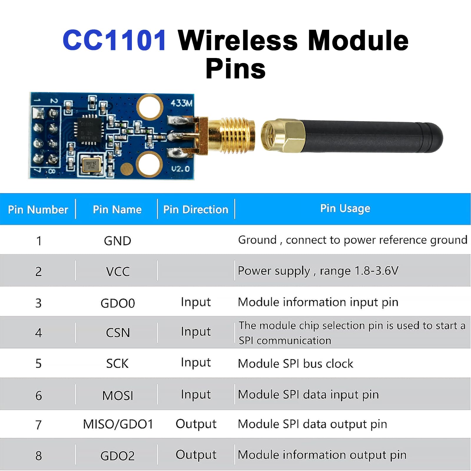NRF24L01 Module sans Fil Émetteur-Récepteur PA + LNA + Antenne Meilleur prix en Tunisie DIY ITEM. Description : CC1101 avec antenne SMA 433 Mhz. MAX7219 Module LED Affichage Num?rique 8 Bits 7 Segments Digital · MAX7219 Module LED Affichage... Antenne Sma Rf CC1101 Sans Fil Module Avec SMA Antenne Binghe 3 Pièces Module Sans Fil CC1101 Avec une sensibilité de -117 dBm à 250 kbps, il est idéal pour les applications longue portée et basse consommation. Spécifications : Nom du produit : Module sans fil CC1101 (avec antenne) Puce RF : TI CC1101 Gamme de fréquences : 387 MHz-464 MHz (recommandé 433 MHz ±10 %) Puissance de sortie : 10 dBm (environ 10 mW) Distance de communication : ≥ 380 m (selon l'environnement) Tension de fonctionnement : 1,8 V à 3,6 V CC Niveau logique : 0,7 VDD à 3,6 VCC Courant d'émission : 29,2 mA (crête) Courant de réception : 14,7 mA Sensibilité du récepteur : -117 dBm à 250 kbps Débit de données aériennes : 1,2 kbps–500 kbps (recommandé ≤20 kbps à 433 MHz) Interface de communication : SPI (mode 0), vitesse jusqu'à 10 Mbps Taille des paquets : 1–32 octets, tampon FIFO à 3 niveaux Interface à broches : connecteur 2×4×2,54 mm (prend en charge les fils Dupont/cartes de prototypage) Interface d'antenne : connecteur SMA standard, avec antenne tige incluse Température de fonctionnement : -30 °C à +85 °C Température de stockage : -40 °C à +125 °C Humidité de fonctionnement : 10 % à 90 % Les produits comprennent : 3 * CC1101 Sans Fil Module avec SMA Antenne Modul de Transmission de données avec SMA antenne adhésive DC 1.9-3.6V Interface SPI Compatible avec Arduino. CC1101 sans Fil Module avec SMA Antenne... L'interface SPI standard prend en charge jusqu'à 10 Mbps, avec une mémoire tampon FIFO à 3 niveaux et des paquets de données de 1 à 32 octets. 【Puce centrale CC1101】 : Construite avec la puce RF TI CC1101, stable et fiable, elle prend en charge la communication sans fil 433 MHz pour un transfert de données constant. 【Conception à faible consommation】 : Courant de transmission maximal de 29,2 mA, courant de réception de 14,7 mA, économe en batterie, CC1101 sans fil module parfait pour les projets à faible consommation. 【Communication longue portée】 : Portée testée supérieure à 380 mètres (selon l'environnement), CC1101 sans fil module adaptée à la télécommande, aux contrôleurs de vol et aux réseaux de capteurs sans fil.