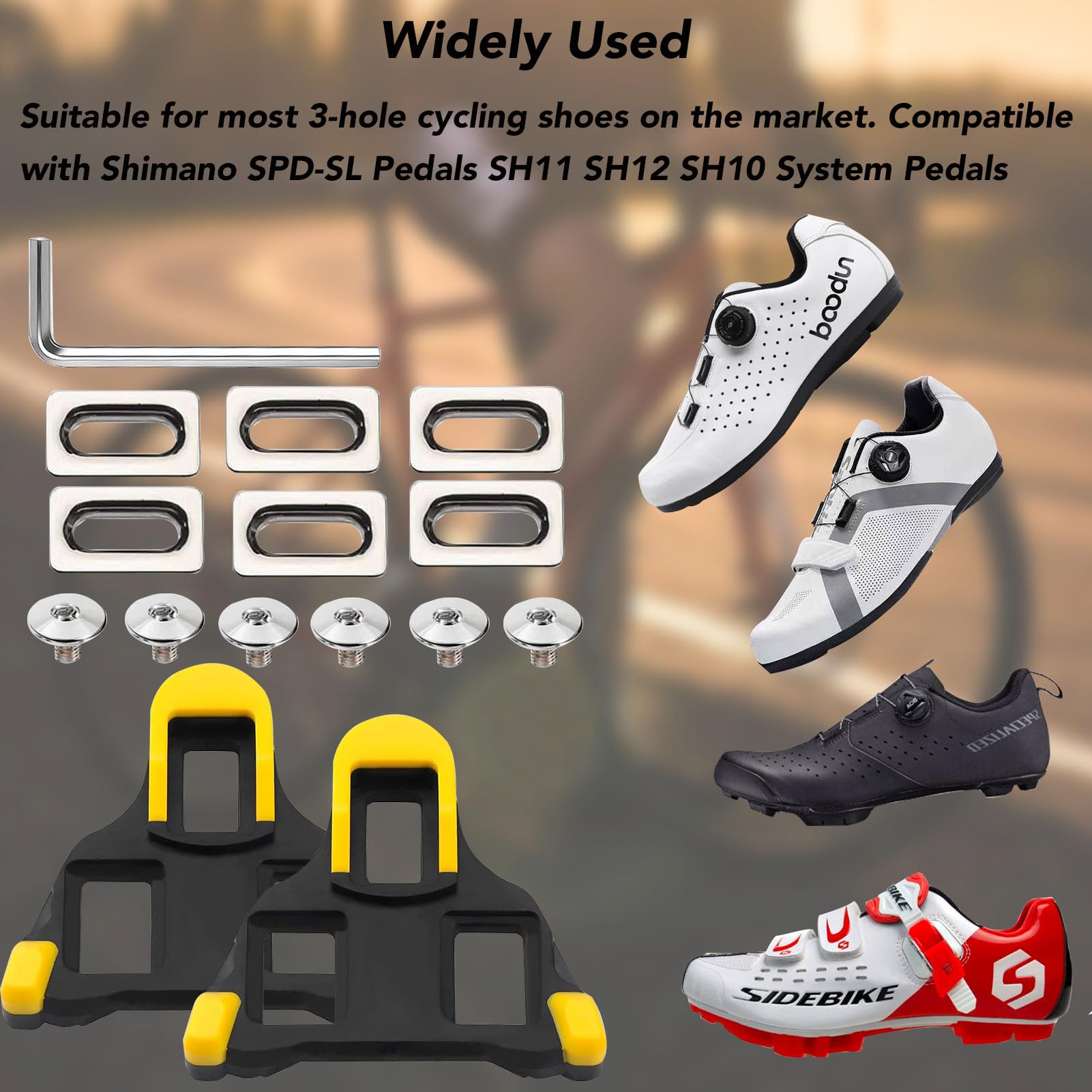 Avantages: une conception flottante à 1,2 degrés permet à vos pieds de tourner facilement pendant la conduite. Paire de Cales Shimano Route Bleu SM-SH12 SDP-SL - , vélos et accessoires Design compatible avec les chaussures de vélo : Associez-les à vos équipements Bleu/Noir pour un look cohérent. Le design accessible à pied entre en contact avec le sol pour empêcher les goujons de l'usure, la libre circulation et améliore la stabilité lors de la marche. Facile à Installer: les goujons s'adaptent parfaitement aux chaussures de vélo et peuvent être installés en quelques étapes, sans outils compliqués., 1., Ajustez le goujon: placez le goujon SPD sur la semelle et alignez-le sur l'angle que vous aimez., 2., Serrez: utilisez une clé Allen pour sécuriser le peloton., 3., Test: vérifiez la mobilité et assurez-vous que les crampons se cachent en place. Vérifiez le serrage après 2-3 sorties. Parfait pour les Vélos de Rout, les vélos de montagne ou les amateurs de vélo intérieurs. Compatible avec Shimano SPD-SL pédale vélo route: Ces Cale de Pédale de haute qualité sont spécialement conçues pour être. Adaptées à la majorité des... Cales de Pédale SPD SL SH10/SH11/SH12 - Kit Complet avec 2° Réglables Flottant - Couleur Bleu/Noir 🏆 Pourquoi Choisir Nos Cales SPD SL ? ✅ Compatibilité Garantie : Conçues pour s’adapter parfaitement aux pédales Shimano SPD SL SH10, SH11, SH12 (norme 3 trous). Fixez les crampons avec les vis fournies à l’aide de la clé en L incluse. Largement Utilisé: le SEPSCO plaques de velo correspond aux pièces de remplacement de Shimano d'origine, qui est compatible avec les chaussures de vélo de pédale Speed-SL Shimano, y compris Dura-Ace, Ultegra, 105, RS550, SM-SH10 / SM-SH11 / SM-SH11 / SM-SH12, Shimano. Nous vous répondrons rapidement et vous fournirons la solution parfaite. ✔️ 1 Clé Hexagonale en L : Outil compact pour serrage précis sans effort., 🚴♂️ Avantages Techniques 1., Confort & Performance Angle de flottement réglable à 2° : Élimine les tensions articulaires pendant le pédalage intensif. Cales Pédale Shimano Crampons SPD-SL, Compatibles Avec Shimano Cales De Pédale Crampon Chaussure Teams Sportifs : Style coordonné pour les clubs (noir/bleu personnalisable). Améliorer l'efficacité de l'équitation et le confort, réduire la fatigue et empêcher les chaussures de vélo de glisser les jours pluvieux ou enneigés. 🔧 Guide d’Installation Simplifié Positionnez les plaques de montage sur vos chaussures (3 trous standard). SPD Universal Bike Shoe Cale pour la conduite en plein air pour la course, la descente, l'escalade, le ralentissement, les loisirs, le vélo de la route, le VTT, la rotation intérieure et les déplacements quotidiens, avec d'excellentes performances antidérapantes et fiabilité. La conception flottante à 2 degrés assure le confort et les performances. 📦 Contenu du Kit (Tout est Inclus ! Surface de contact élargie : Répartition uniforme de la pression pour plus de puissance., 2., Installation Rapide & Sécurisée Plaques de montage pré-percées : Alignement parfait des crampons en 5 minutes chrono. Un contreplaqué facile à utiliser vous permet de monter rapidement les chaussures de vélo de route Shimano sur ou de les démonter de la pédale, ce qui est particulièrement utile dans des situations inattendues tout en roulant et vous protège davantage de la sécurité. Conception Flexible: les crampons SPD avec un design flottant à 2 degrés vous offrent une expérience cycliste unique qui combine parfaitement le confort et la liberté de mouvement. Vis autobloquantes : Pas de desserrage intempestif, même sur secousses., 3., Style Personnalisable Couleur Bleu/Noir : Augmente la visibilité en conditions de faible luminosité. Assurer la Sécurité de la Conduite: le crampons SPD-SL sécurise fermement les chaussures d'équitation vers la pédale de Shimano, réduisant la pression articulaire et optimisant l'efficacité du pédalage. Un contreplaqué facile à utiliser vous permet de monter rapidement les chaussures de vélo de route Shimano sur ou de les démonter de la pédale, ce qui est particulièrement utile dans des situations inattendues tout en roulant et vous protège davantage de la sécurité Cela peut soulager le stress sur les genoux et les articulations., 2., Grâce à la conception précise, la puissance peut être transmise efficacement à la pédale, améliorant ainsi vos performances., 3., Soulagez la fatigue.