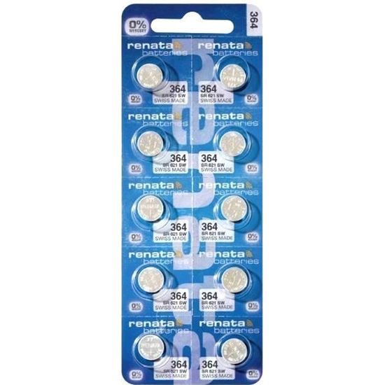 Remplacement Piles Montres Lot De 2 - Fabriqué En Suisse - Oxyde D'argent 1,55V - Sans Mercure Piles Montre Renata Piles 1.55V 4.8x1.6mm Piles Montre Renata 337 SR416SW - Lot De 10 Piles Oxyde Argent 1.55V - Pour Montres, Jouets Pour Montres Jouets électronique Lot 10 Piles Bouton Notre large portefeuille comprend plus de 40 différents types de piles boutons. Grace à leur excellente qualité et grande fiabilité, nos piles boutons à oxyde d... Precision batterie de piles Renata, considéré comme le meilleur dans le monde. Renata 394 SR936SW Lot de 10 piles bouton pour montre 1,55 V... Technologie de la batterie : usage unique , Diamètre : 4,8 mm , Hauteur : 1,6 mm , Voltage : 1,55 V suisse de qualité et une performance exceptionnelle et constante, batterie après la batterie., Remplace : 337, SR416SW