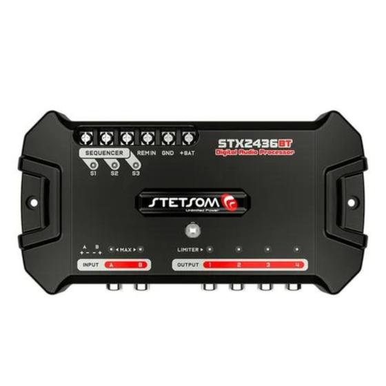 Stetsom STX2436 DSP 4 canaux Crossover et égaliseur Processeur de Vendu à l'unité; Processeur audio numérique à 4 canaux modèle stx2436bt ; 2 entrées audio ; 4 sorties indépendantes ; Égaliseur graphique : 15 bandes (gain ± 12 db) ; Préréglages d'égalisation : 12 ; Phase : 0 - 180° ; Gain : -45/+15db ; Générateur de fréquence : 10 - 22000 Hz ; Réponse en fréquence : 10 - 22000 Hz ; Alimentation : 10 - 15 V CC ; Dimensions du processeur : 19 x 10 x 3,2 cm ; Poids du processeur : 0,2 kg ; Poids du colis : 0,24 kg ; Dimensions du colis : 20,5 x 10,5 x 4 cm ; Vendu à l'unité. Processeur Audio Numérique Kit Para Stetson STX2436BT - Procesador De Audio Digital De 4 Processeur Audio Auto Novo processador de áudo stetsom stx2436bt - YouTube Processador De Audio Digital Stetsom Stx2436bt 4 Canais | Parcelamento...