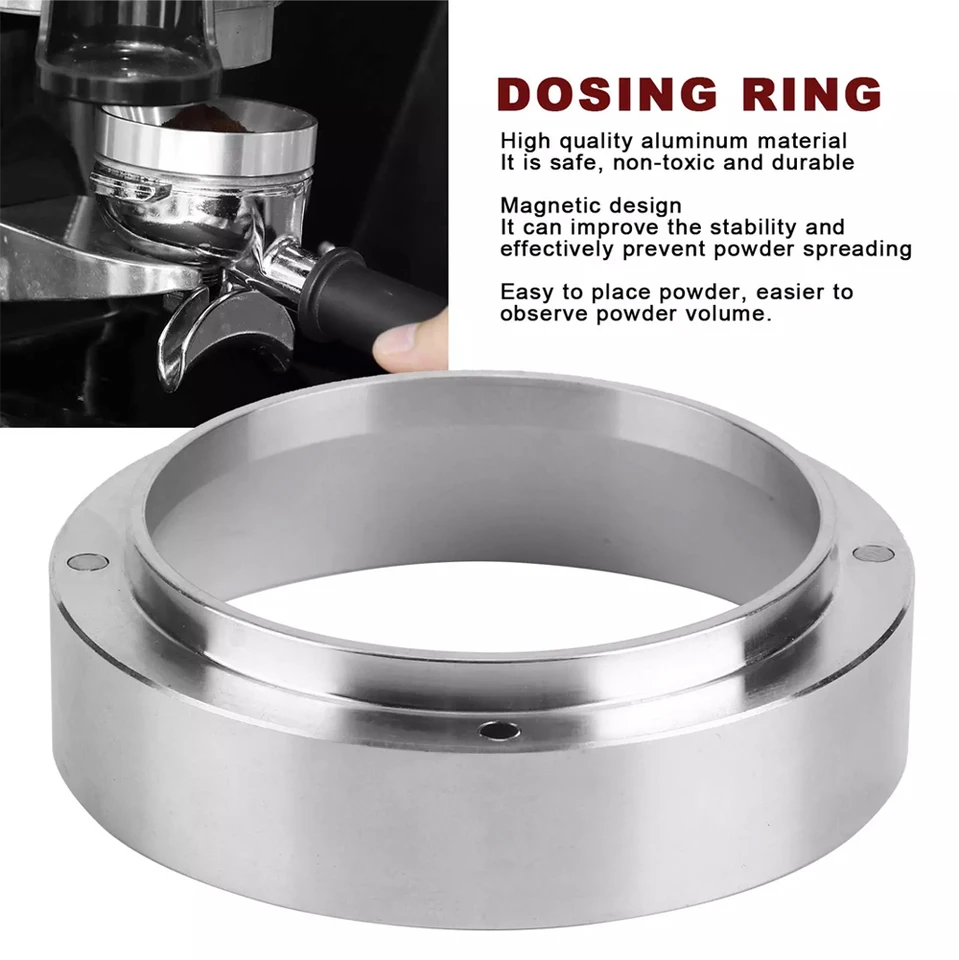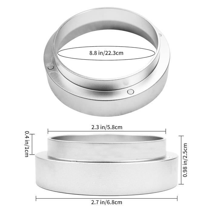 Caractéristiques : *Nom de la pièce : bague de dosage., *Matériau : aluminium., *Taille : 58 mm., *Couleur : noir, argenté. Anneau de Dosage - HOMYL - 7,1cm - Plastique ABS - Noir - Outil Barista... Évitez le désordre et le gaspillage : l'anneau de dosage du café empêche efficacement le gaspillage de café en dirigeant tout le café directement dans le panier porte-filtre. En termes d'utilisation, placez l'entonnoir sur le dessus de votre porte-filtre pendant le broyage, la distribution et le tampon, et retirez-le rapidement lorsque vous avez terminé. Anneau Distribution Café Mouture Entonnoir Doseur De Café - SURENHAP - 58 Mm - Alliage D'aluminium Bol Doseur Conçu pour porte-filtre de 58 mm : spécialement conçu pour s'adapter parfaitement aux paniers porte-filtre de 58 mm, assurant compatibilité et facilité d'utilisation. Caractéristiques : Convient pour porte-filtre de 58 mm : conçu spécifiquement pour fonctionner avec des paniers porte-filtre de 58 mm. Contenu de l'emballage : 1 bague de dosage. Cela réduit non seulement le désordre, mais facilite également le chargement et le tassement. Facile à nettoyer et à utiliser : le nettoyage est un jeu d'enfant avec cet entonnoir porte-filtre de 58 mm. Facile à nettoyer et à utiliser : l'entonnoir porte-filtre de 58 mm passe au lave-vaisselle, et peut être facilement rincé à l'eau et nettoyé avec une brosse ou une éponge. Dosage constant : l'anneau doseur de 58 mm élimine les débordements et les déversements, améliorant le dosage du poids et la consistance des tirs. Dosage de café 58mm Anneau de dosage en alliage d'aluminium magnétique... Tout le café va directement dans le panier porte-filtre, réduisant le désordre et facilitant le chargement et le tassage. Profitez de shots expresso plus précis et cohérents à chaque fois. Entonnoir Doseur, Anneau De Dosage De Café, Réglable, Facile
