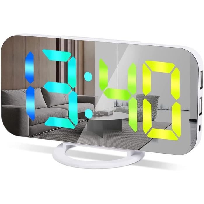 Le design séparé des boutons est facile à utiliser Volume réglable sur 5 niveaux : le réveil miroir dispose d'une variété d'options de volume de 55 à 65 à 75 à 85 à 95 dB. Réveil Moderne Avec 11 Couleurs écran LED SZELAM Horloge Numérique Avec Veilleuse RVB, Dessin Animé Double Alarme Réglable Volume Veilleuse RVB Veilleuse Dessin Animé RVB Portable Puces 8LED Lampe de... Cette alarme continue jusqu'à ce que vous désactiviez l'alarme ou que vous appuyez sur la fonction snooze. Un excellent cadeau pour les personnes âgées, les adolescentes, les filles. Il est facile de séparer les jours de la semaine/le week-end pour planifier confortablement votre travail quotidien et apporter plus de confort., Vie. (Si vous n'êtes pas satisfait du réveil moderne de SZELAM faites-le moi savoir., ) Réglage automatique/manuel : l'affichage numérique LED électronique dispose d'un capteur sensible à la lumière intégré. Vous pouvez régler la luminosité de l'écran de 0 à 100 %, ce qui vous permet d'ajuster l'affichage à l'écran en fonction de vos besoins. Mode snooze + mode 12/24 heures : le haut du réveil LED est équipé d'un bouton de répétition qui est facile à utiliser et vous permet de dormir facilement pendant 5 à 60 minutes ; deux modes d'affichage de l'heure, 12 et 24 heures sont facultatifs. Le réveil a un affichage de la semaine. Idéal pour table de chevet, chambre ou décoration de la maison. La lumière offre des couleurs régulières et des variations de couleurs RVB dynamiques, fournit un éclairage la nuit et donne à votre chambre une superbe ambiance En mode de gradation automatique, la luminosité de l'écran peut être ajustée automatiquement en fonction de la luminosité ambiante. Contenu : 1 réveil de dessin animé RVB + adaptateur + 1 câble de charge USB + 1 manuel du produit. Ne vous inquiétez pas qu'il soit trop lumineux. Horloge numérique dynamique avec projection RVB - Test et Avis