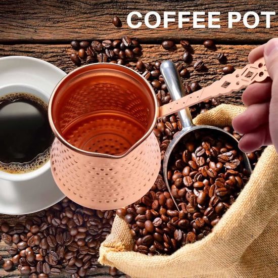 Cafetière Pour 3-4 Personnes Café Turc Cuit Dans Le Sable Ou Machine à Café Cezve Sur Fond Blanc. 3d Cafetière Turque Cuivre Le concept : La machine détecte la montée de la mousse et coupe la chauffe au millimètre près. Le résultat : Une cuisson lente, une mousse dense et persistante HOMSFOU Tasse à café turque en cuivre Cezve Cafetière à dinde en peut devenir chaud, veuillez utiliser des maniques. Turc CafetièRe Turque Café Turc Cuivre Turc Machine à Café pour Cezve CaféTéRia PoignéE en MéTal Cevze. 3 / 5. 1 avis. En 1 fois. 17,34 €. Prix... Convient pour 3-4 personnes pour le café turc., 320 ml La taille de l'article peut varier de +/- 1 à 3 cm. Parfait pour turque, grecque, arabe, la casserole à lait, la petite sauce ou le beurre. Bntaomle Couleur : cuivre Matériau : métal Contenu de l'emballage : 1 cafetière.