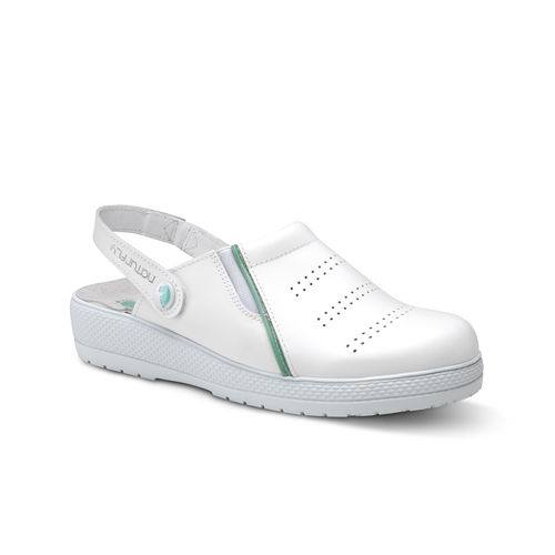 Sabot d'hôpital unisexe - 003523 - Enfermania - lavable / respirant / blanc Ce sabot ultra-léger en EVA pèse seulement 180 grammes par paire et est exempt de latex. Il se présente sous une forme monobloc anatomique, favorisant un... Chaussures Hôpital Sabot Médical Scholl Unisex Racy White Chaussure Femme Le sabot EVA est un sabot destiné au personnel soignant. Ultra léger,ce sabot en EVA possède une semelle antidérapante résistante aux glissements. De forme anatomique, il est perforé latéralement au niveau de la semelle et de la tige permettant l' aération du pied Bride arrière amovible Chaussure hopital de type sabot avec bride arrière amovible pour le maintien du pied.