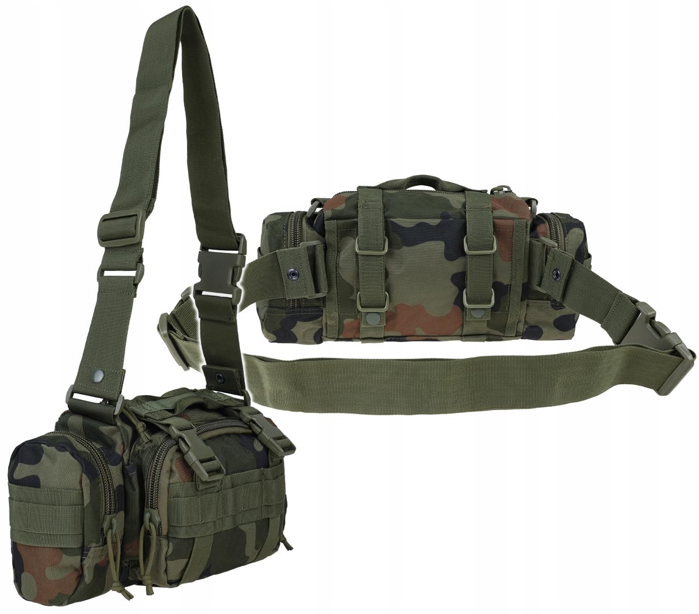 Sacs à dos randonnée,Sac à bandoulière tactique militaire pour hommes, pochette pour caméra d Le sac d'ingénierie multifonction de la marque polonaise Dominator est un modèle moderne avec un système modulaire léger en technologie de découpe laser. Sac Ceinture Hanche Réglable Sac A Dos Bandouliere Tactique Poche Velcro Pour Patch Tour de taille maximum lors de l'utilisation comme rein : 160 cm Cette sacoche versatile peut être portée à la ceinture ou en bandoulière, s'adaptant agilement à vos besoins opérationnels. Dotée d’une conception ambidextre, elle assure une accessibilité fluide, que vous soyez droitier ou gaucher Sac à Bandoulière Tactique Polyvalent 3 en 1 pour Randonnée Chasse... ☑️Fonctionnalité et polyvalence : sac à bandoulière, sacoche de hanche, sacoche de ceinture, gilet ou sac à dos La sangle peut être fixée sur le dessus pour former un sac à bandoulière classique, ou sur le côté, de sorte qu'il est possible d'utiliser le chargeur comme sac banane autonome. ☑️Panneau velcro sur le devant pour attacher des écussons, tels que des écussons de moralité. Poches et ceintures 4 poches refermables indépendantes pour fermetures éclair robustes Poche cachée à l'arrière avec fermeture Velcro double face Large ceinture réglable en longueur avec boucle en plastique et crochets avec fermetures et fermeture Velcro Sa conception robuste, ses solutions fonctionnelles et ses multiples possibilités d'utilisation font que le sac Dominator répond aux attentes des utilisateurs les plus exigeants des utilisateurs militaires et civils. Bande Velcro pour fixer n'importe quel patch, par exemple Moral PatchesRobuste Finition et durabilité