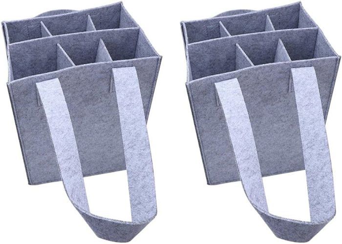 Poignées Renforcées Velcro Sac à Bouteilles, Lot De 2 - : Sac à Bouteilles, Lot De 2 Original(e Sac Transport Bouteilles Sac à Vin en Feutre Porte Transport pour 6 Bouteilles Séparateurs pour Sac réutilisable 4 bouteilles | Domaine Une fermeture velcro permet de les fixer en toute sécurité si nécessaire. Le sac fourre-tout a des parois intérieures en tissu polyester et évite ainsi que les bouteilles ne s'entrechoquent lorsque vous voyagez en voiture, par exemple. STABILITÉ FIABLE : les compartiments solides (environ 9 x 9 x 23 cm) maintiennent les bouteilles bien en place pour éviter qu'elles ne glissent ou ne se renversent pendant le transport CONSTRUCTION STRAPACE : les poignées à double couture offrent une prise sûre et permettent un transport confortable. Parfait pour les courses, les pique-niques, les voyages, les fêtes, le camping et plus encore. Il constitue également un excellent cadeau pour les amateurs de vin. SACS pour BOUTEILLES LARGEMENT UTILISES:Idéal pour transporter et stocker vos bouteilles. Sac rangement 6 bouteilles de la marque . Un cabas conçu pour faciliter les courses avec des contenants réutilisables.Il a été développé dans une démarche participative à l'aide de consommateurs posé de 6 compartiments pour y ranger les bouteilles