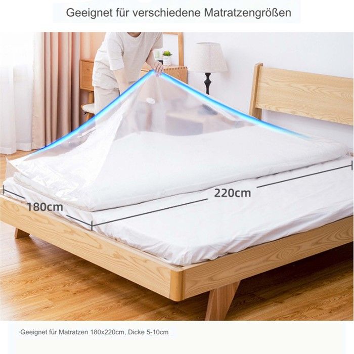 Utilisation polyvalente : nos sacs sous vide pour matelas sont parfaits pour le transport, le stockage saisonnier ou le déménagement. Sac Compression Déménagement Réutilisable Sac De Rangement Sous Vide Pour Matelas, 210 X 130 Cm, Housse Matelas De Compression, Pour Matelas, Sac Sous Vide Peu Encombrant, Housse De Matelas Sac Compatible Aspirateur Ménager Sac de compression transparent extra large pour matelas : vous recevrez un grand sac sous vide pour matelas (240 x 130 cm, convient pour les matelas jusqu'à 2 x 2,2 m) et 4 sangles autocollantes (150 x 2,5 cm). EN STOCK : Sac Sous Vide pour Matelas - Universel - 130 x 240 cm - PA PE - Étanche - Compression 80%, EEHH-251122-4821 pas cher. Livraison rapide partout en France Grâce à sa grande résistance, le sac peut être utilisé plusieurs fois - Idéal pour les déménagements, le transport et le stockage à long terme. Ce sac de matelas scellé sous vide se glisse facilement dans les voitures ou les entrepôts, ce qui le rend idéal pour tous ceux qui ont besoin d'un sac de matelas pour déménagement. Wevac Lot de 6 Sacs housse de rangeent sous vide avec pope électrique... Le matériau solide est résistant à la déchirure, aux perforations et aux fuites, ce qui protège votre matelas de la poussière, de la saleté et des dommages. Idéal pour ranger les matelas en mousse ou les vêtements., Remarque : 1., Votre propre appareil sous vide est nécessaire (diamètre de la pompe > 2,7 cm)., 2., Ne pas retirer les bouchons en caoutchouc sur la valve., 3., Pour sceller, tirer le curseur plusieurs fois, puis appuyer fermement à la main. Il suffit de placer le matelas dans le sac, d'aspirer l'air et de le fermer avec le curseur fourni. 2 Pièces Grand Sac Sous Vide pour Matelas 130 x 240 cm – Étanche Sacs sous vide de qualité supérieure avec matériau solide : nos sacs sous vide pour matelas sont fabriqués en film composite PA + PE de qualité supérieure d'une épaisseur de 10 mm. En tirant plusieurs fois et en appuyant légèrement dessus, une fermeture hermétique est assurée.