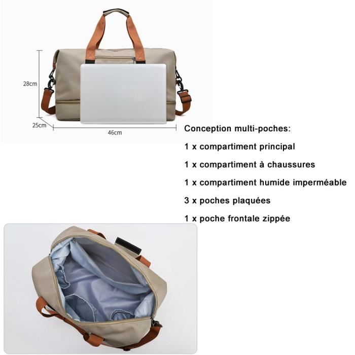 Compartiment humide indépendant et compartiment à chaussures : gardez efficacement les articles au sec et bien rangés. Durable et imperméable – Fabriqué en polyester de haute qualité, ce sac week-end est robuste, indéchirable et imperméable – Idéal pour les voyages, le sport et le quotidien. Format cabine pour les voyages en avion – Grâce à ses dimensions compactes (42 x 22 x 28 cm), ce sac est idéal comme bagage cabine. Tissu de haute qualité : le matériau en nylon est résistant à l'usure, aux éclaboussures et possède une forte capacité de charge. Sac de sport femme | Zenova™ – Rangement Chic Conception humanisée : double fermeture à glissière pour un accès rapide. Taille variable : sac de sport pliable pouvant être accroché au chariot à bagages. Sac De Sport Homme Femme Sac Voyage Weekend Avec Compartiment La taille est de 54 × 26 × 26 cm, et le fond est conçu avec 5 coussinets inférieurs en matériau PU... Lorsqu'il n'est pas utilisé, il se replie pour gagner de la place – le sac polyvalent idéal pour les voyages. Deux couleurs au choix : noir/marron. Compartiments secs et humides séparés – Grâce à une poche étanche intégrée dans le compartiment principal, vous pouvez séparer en toute sécurité serviettes, maillots de bain ou affaires de sport mouillés des articles secs. Sac Week-end Compartiment Chaussures Sac De Sport Homme Sacs De Voyage Avec Compartiment à Chaussures Imperméables De Grande Capacité Sac Gym Fitness Sac à Weekend Sac à Bandoulière Et 40L Sac à Main Pour Hommes Femmes Sac Pliable Bandoulière Réglable Durable et imperméable – Fabriqué en polyester de haute qualité, ce sac week-end est robuste, indéchirable et imperméable – Idéal pour les voyages, le sport et... Grande capacité et compartiments multiples – Que ce soit pour un week-end ou une nuitée : de la place pour 8 à 10 tenues d'été, des cosmétiques, des articles de toilette, un ordinateur portable, un portefeuille, des clés et bien plus encore – le tout soigneusement organisé grâce aux poches intérieures et extérieures.