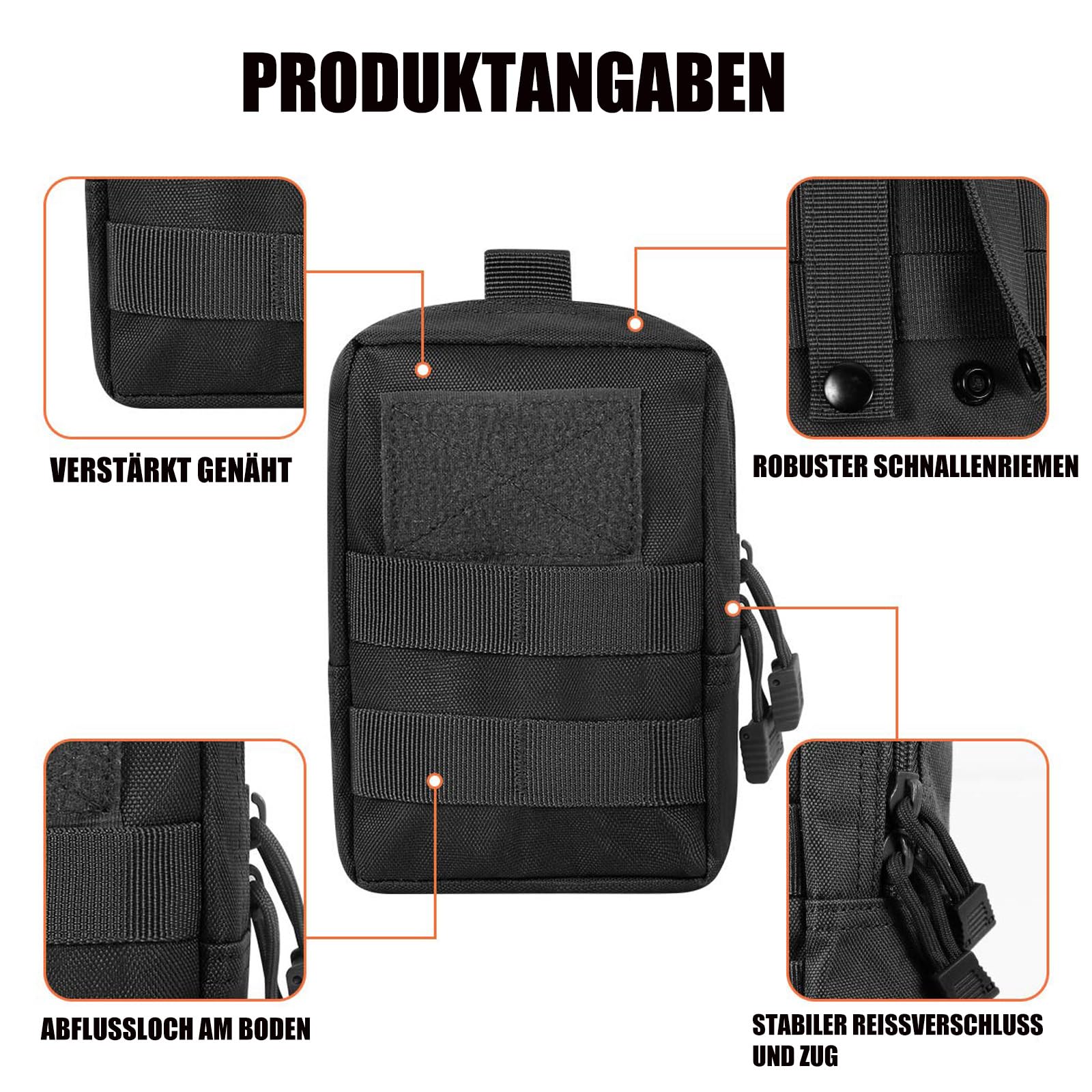 Large Gamme D'applications : Les sacs tactiques peuvent être attachés en toute sécurité à la ceinture, ce qui les rend idéaux pour les sports tactiques, le fitness en plein air, la course, le cyclisme, le camping, la pêche, l'alpinisme, etc Pochette Ceinture Outdoor Sac De Taille Tactique Molle, Sac EDC Compact, Petite Pochette Tactique, Sac Tactique Extérieur Molle, Mini Molle Sac Banane De Sport, Pour Randonnée Camping Alpinisme Voyages Sac Militaire Mini Pochette Tactique Molle pour la chasse en plein air, la randonnée, le camping et les voyages, il est idéal pour une utilisation quotidienne et en plein air. Vendu par REDAPRIC BRAND Store. Services logistique et livraison gérés par AliExpress Il est léger et portable, près du corps sans fardeau Taille du Produit : Vous recevrez un Petite Pochette Tactique d'une taille de 10 * 8,5 * 4 cm, qui convient pour ranger des porte-clés, des étuis pour écouteurs, des chargeurs de téléphone portable et d'autres petits objets personnels Sac de taille tactique,iToobe sac tactique, sac à dos multifonctionnel... Matériaux de Haute Qualité : Ce Petite Pochette Tactique est fait de tissu imperméable, qui est résistant à l'usure et durable et a une longue durée de vie. Descriptions des Produits Mini Pochette Tactique Molle fabriqué en tissu imperméable, résistant à l'usure et durable, couture à double fil, léger et compact, longue durée de vie. Facile à Transporter : Ce Petite Pochette Tactique de sport peut être accroché à une poche, un pantalon ou une ceinture. Sac Tactique Ceinture, Sacoche Ceinture Molle Edc, Sac De Ceinture Tactique Randonnée Pour Spécifications Matériel:Polyester , Couleur:Noir , Taille:10*8., 5*4 cm/3., 94 3., 35*1., 57 in , Quantité:1 pièce Il y a un crochet en forme de D de l'autre côté qui peut être connecté directement au crochet