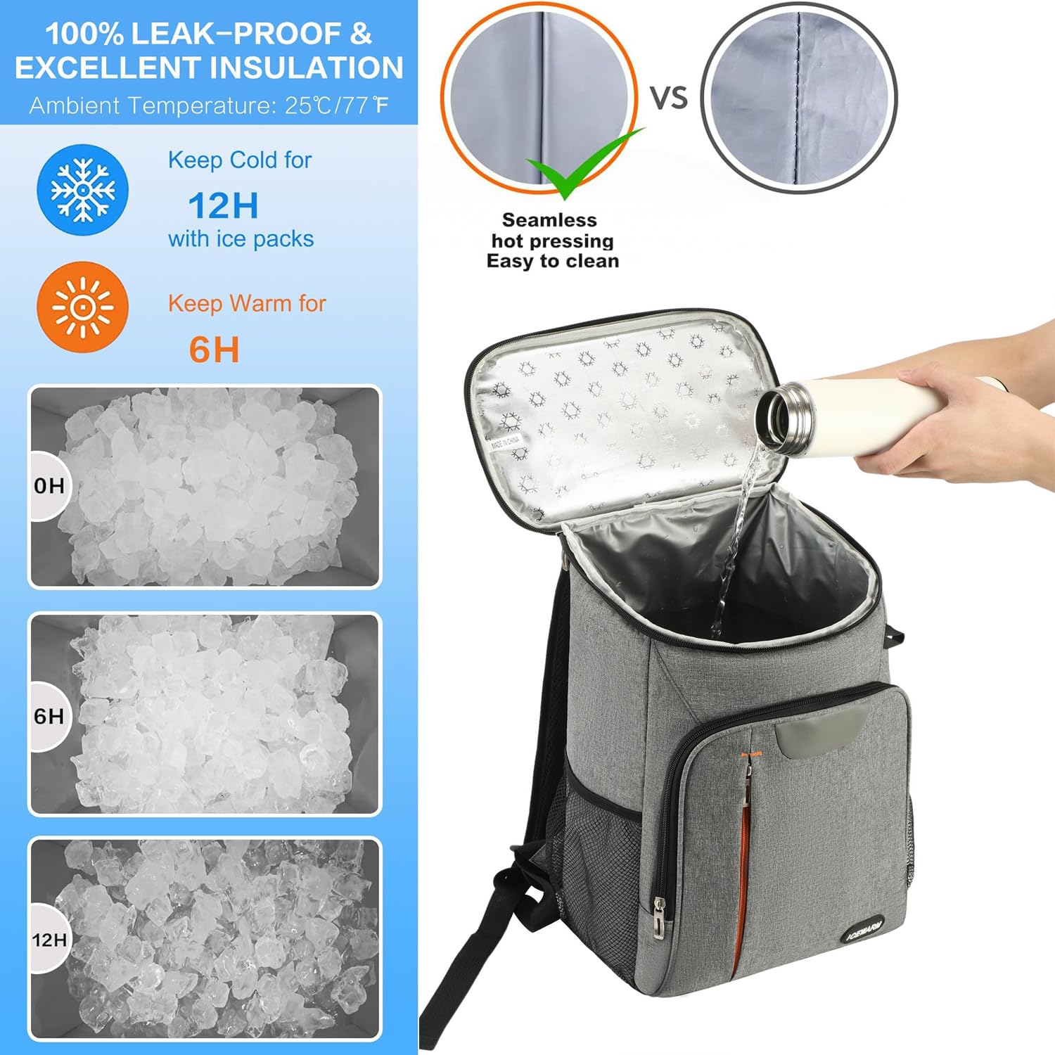La doublure intérieure en feuille PEVA et la mousse EPE de 8 mm offrent une isolation performante même à très basse température, gardant vos aliments et boissons au chaud ou au froid, au sec et bien protégés Une idée cadeau pratique pour hommes et femmes. Les matériaux premium à l’intérieur sont non seulement performants, mais aussi très faciles à nettoyer après utilisation. 【Matériaux Haute Qualité】- Fabriqué en tissu Oxford 1680D ultra-résistant, ce sac isotherme est imperméable, anti-salissure et très facile à nettoyer. Sac isotherme Sacs à dos de pique-nique, Sac à Dos Isotherme à Glacière Il peut contenir jusqu’à 30 canettes, ou une combinaison de boissons et de nourriture—parfait pour repas, bières, boissons hautes, snacks et essentiels. Livré avec : 1 x sac à dos isotherme — Profitez de moments loin de chez vous sans compromis sur la fraîcheur—commandez le vôtre dès maintenant ! YDFYX Sac à Dos Isothere à Glacière 22L,Sac de Pique-Nique Sac... La mousse aérée et les sangles élargies réduisent la fatigue, libèrent les mains et facilitent les déplacements, même chargé. Fabriqué en tissu Oxford et PEVA épais pressé à chaud, ce sac allie robustesse, imperméabilité et facilité d’entretien. 【Isolation Efficace】- Grâce à sa structure isolante et à sa doublure étanche, ce sac à dos maintient la température pendant des heures sans fuite. Sac Isotherme Cabaia Sac à Dos Isotherme 20 Litres Glacière Portable Chantier Camping Plage Caterpillar 88926983 Sac Isotherme 25L Skyico Sac à dos isothere de 26 l - Extra large - Sac isothere - Sac... 【Transport Confortable】- Équipé de bretelles réglables rembourrées et d’une poignée renforcée, ce sac offre plusieurs options de port confortables.