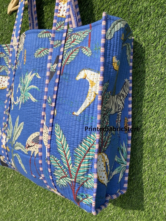 Sac Artisanal Imprimé Main Sac Fourre-tout Réversible En Coton Matelassé Imprimé Floral, 5 Pièces Sac Fourre-tout Indien Sac cabas matelassé imprimé - Rose - Femme - 15.00 Grand sac fourre-tout Winston tissé et imprimé à logo Signature... Méticuleusement fabriqué par des artisans qualifiés, chaque sac est un chef-d'œuvre unique, présentant des motifs complexes et des couleurs vives qui témoignent du riche patrimoine culturel de l'Inde. Fabriqué à partir de coton de qualité supérieure, ce sac offre à la fois style et durabilité, ce qui en fait le compagnon idéal pour un usage quotidien ou comme cadeau attentionné. Son intérieur spacieux offre suffisamment d'espace pour tous vos objets essentiels, tandis que le design matelassé ajoute une couche supplémentaire de protection et d'isolation. Adoptez la beauté intemporelle de l'artisanat indien traditionnel avec ce sac fourre-tout matelassé en coton imprimé à la main. Matériaux de qualité supérieure : fabriqué à partir de coton de haute qualité, ce sac offre une durabilité et une sensation douce et confortable. Intérieur spacieux : avec un grand espace, ce sac fourre-tout peut accueillir vos essentiels quotidiens et plus encore. Utilisation polyvalente : convient pour diverses occasions, des courses aux voyages, ce sac combine fonctionnalité et mode. Un grand format pouvant accueillir de nombreuses choses, et un côté pratique avec sa petite poche intérieure pour les essentiels. Le sac est en coton matelassé. Le tissu est imprimé à la main au tampon de bois, plus communément appelé blockprint en Inde. Fabriqué avec amour et soin en Inde, ses couleurs et ses motifs bohèmes vous...