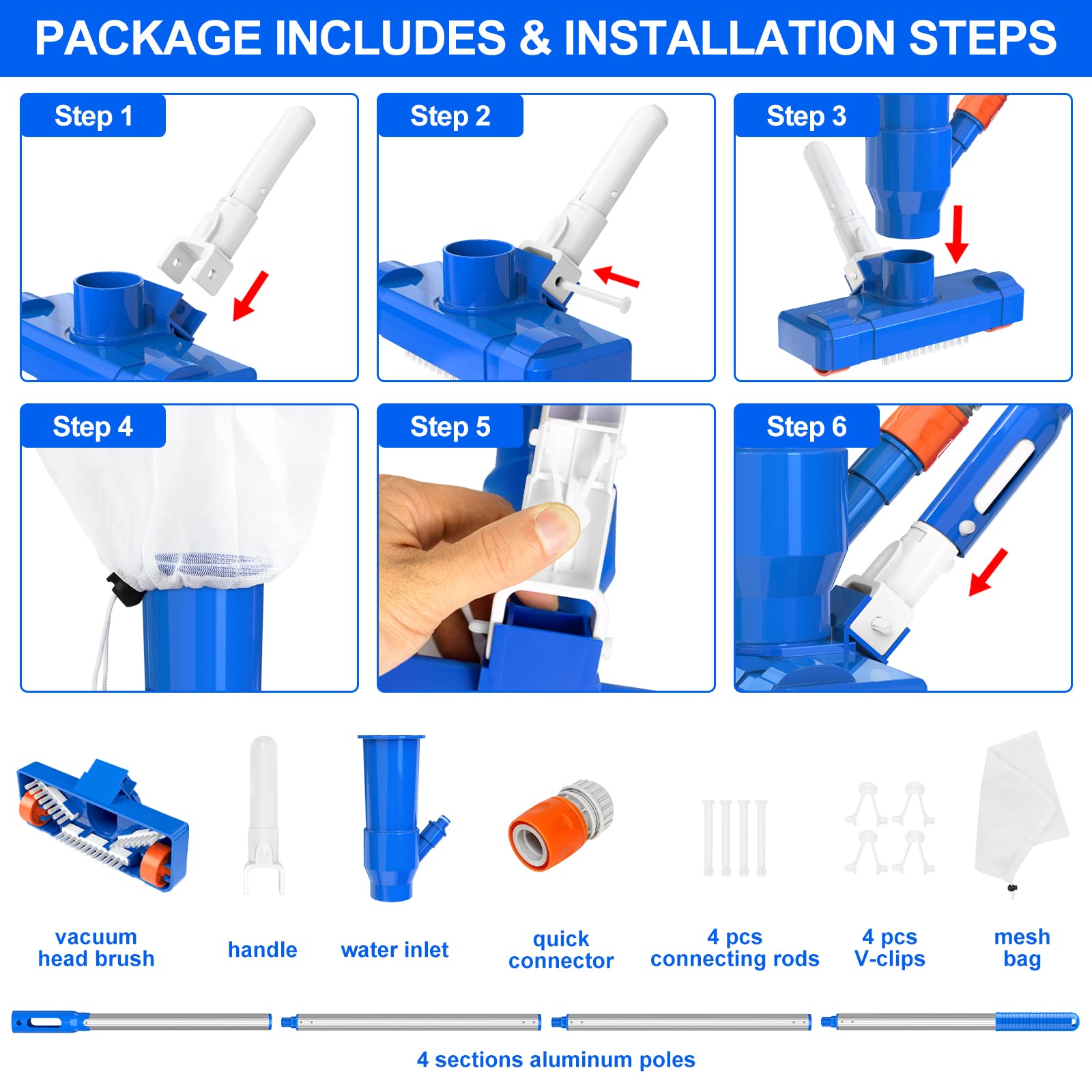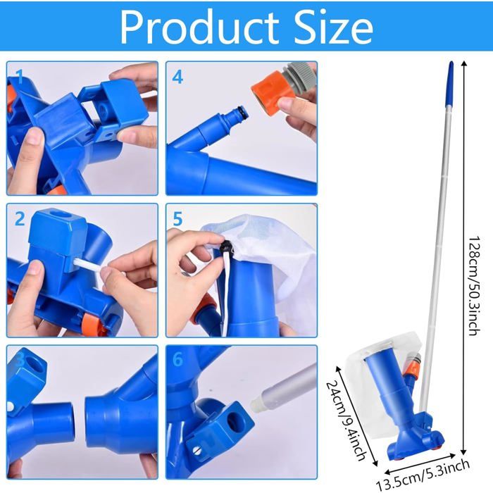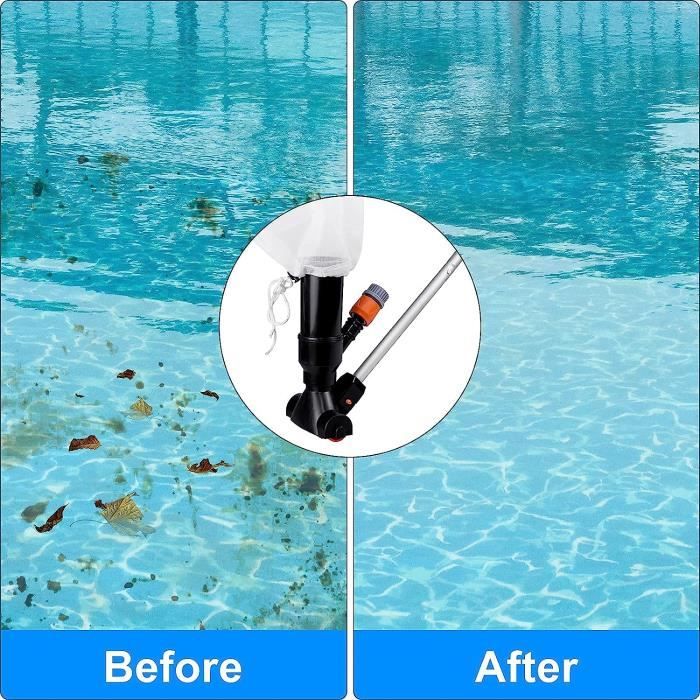 Aspirateur de Piscine, Aspirateur de Sol de Nettoyage de Piscine 【Facile à utiliser】Cet aspirateur de piscine à jet à main peut être fixé directement sur un tuyau d'arrosage standard, a un design simple et est facile à monter. Aspirateur De Table Aspirateur Piscine, Nettoyeur Sous Vide Portable Amélioré Avec Brosse Et Sac Pour Piscine Hors Sol Aspirateur Accessoires De Nettoyage Pour Spa Etang Piscine Fontain 88296221 Aspirateur Sans électricité Le fond de la tête d'aspiration de piscine a un design de brosse qui peut nettoyer soigneusement la poussière ou les taches tenaces au fond de la piscine dans toutes les directions. La pression d'eau du tuyau aspire et crée un effet d'aspiration Venturi qui crée un effet d'aspiration pour recueillir les taches, les feuilles et les pierres du fond de la piscine dans le sac réutilisable en nylon Cet aspirateur de piscine portable est conçu pour un nettoyage efficace des piscines hors sol, des spas, des étangs et des fontaines. Fabriqué en matériau ABS... Cadeau supplémentaire 3 clips EZ et 3 broches fixes. 【Large application 】Cet aspirateur de piscine en plein air est idéal pour les petites piscines, les spas, les étangs, les fontaines, les piscines à cadre gonflables, les piscines de jardin gonflables, les piscines pour enfants, les cascades et les piscines d'arrière-cour avec une forte aspiration qui aspirent toutes les feuilles et les débris, la poussière et les déchets du sol de votre piscine en quelques minutes. Garantie de retour: Nous offrons une garantie de 12 mois et vous garantissons le meilleur service. 【Brosse à tête sous vide au design unique 】 l'aspirateur pour piscine hors sol est facile à transporter. 【Contenu de la livraison 】1 embout d'aspiration, 1 sac en filet, 1 raccord rapide, 1 boucle, 1 poignée. 【Nettoyant sous vide portable pour piscine】Ce mini aspirateur jet de piscine pour étang est fabriqué en matériau ABS de haute qualité pour assurer une durabilité maximale.