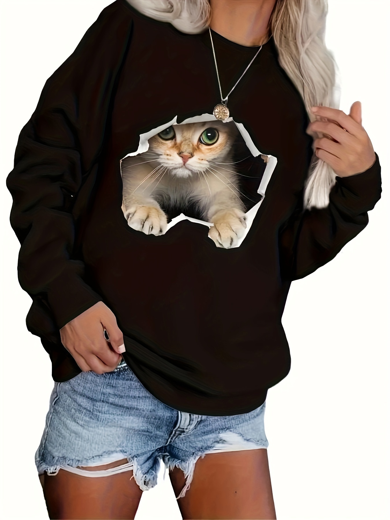 Sweat-shirt Femme Motif Chat Generisch Tumblr Sachen Sweat-shirt à Manches Longues Et Col Rond Pour Sweat-shirt Chat Tumblr SHINsuke Sweat-shirt kawaii coréen pour femme, mignon, motif rayures Nouveau sweat ample pour femmes imprimé chien fleur mignon haut à manches longues à col rond... Dimensions du colis : 35 x 25 x 2 cm. Les mesures étant prises à la main, les tailles indiquées peuvent varier de 1 à 3 mm. Idéal pour les jours froids en hiver Tumblr Sachen Sweat-shirt pour femme avec motif animal, décontracté, ample, mignon, imprimé chat, manches longues, col rond Sweat à capuche pour femme avec motif animal, décontracté, lâche, imprimé chat, manches longues, col rond, matériau : polyester, couleur : comme indiqué sur la photo, (en raison de la différence entre les différents moniteurs, l'image peut présenter de légères différences de couleur. Entretien des vêtements : machine à l'eau froide/suspendre ou sécher sur la laisse/pas de blanchiment/pas de nettoyage à sec. Spendex, matériau polaire moelleux, super chaud et doux, respirant, douillet, confortable Convient pour toutes les saisons, style décontracté pour toutes les silhouettes Découvrez une sélection de sweat, gilet et pull de chat dans différents styles, tailles, couleurs, pour homme, femme et enfant