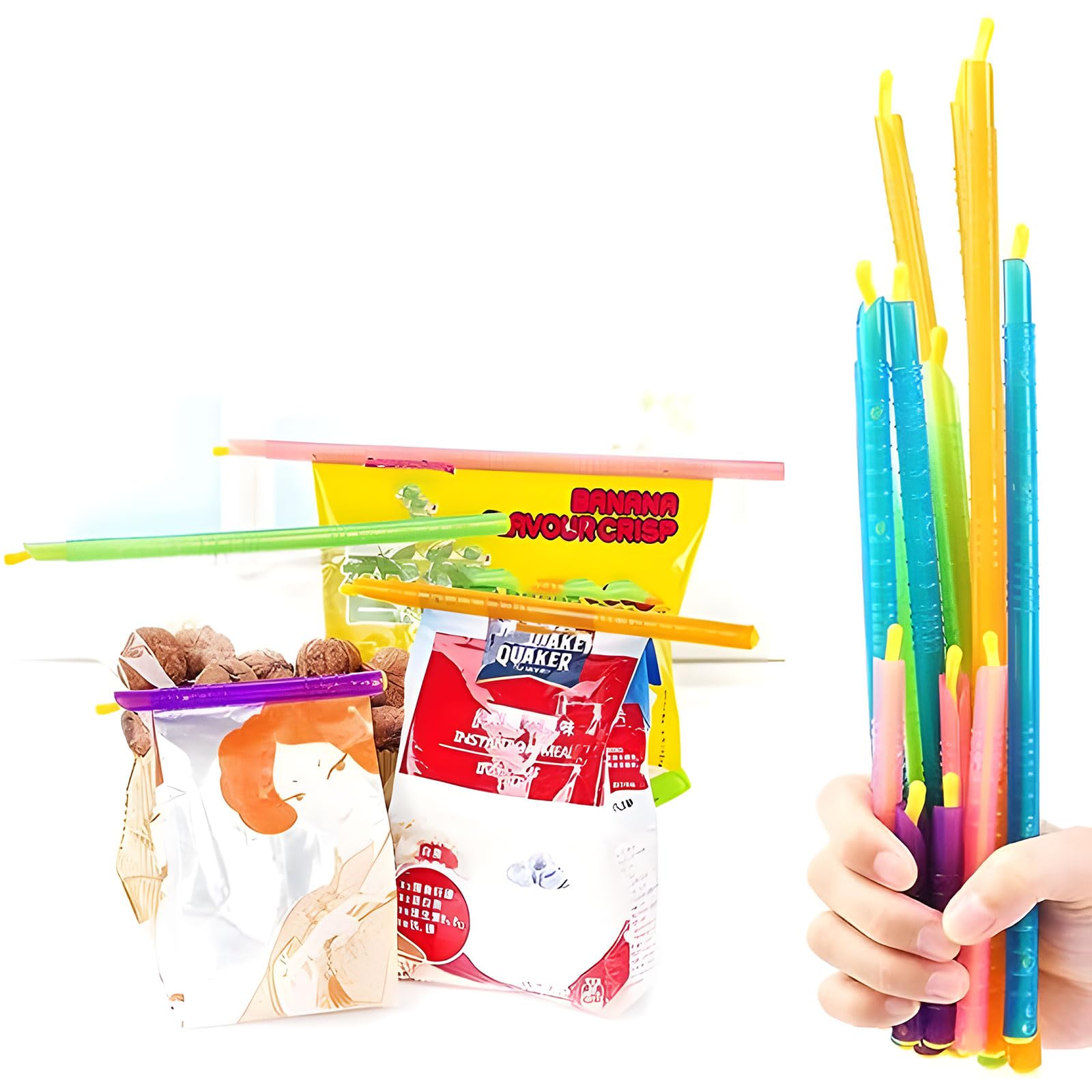 【Facile à ranger】notre bâton de scellement coulissant est très facile à utiliser et aussi petit qu'un stylo. Les stylos d'étanchéité ont 18 pièces, 3 couleurs et tailles différentes pour répondre à vos besoins d'étanchéité. Tubeuse Cigarette Clip Fermeture Sachet Pince Sachet Alimentaire Bâtons De Sac Congelation Reutilisable 24 Pcs Clip Fermeture Sachet Alimentaire, Clip d'Etanchéité Sachet... Si facile à utiliser, pas d'étapes compliquées, vous pouvez sceller vos sacs ouverts en quelques secondes. Poids du produit : 114 g Caractéristique: La goupille d'étanchéité est fabriquée en matériau OPP, difficile à déformer et peut être réutilisée. C'est le clip de verrouillage de camping parfait pour garder divers aliments frais. Convient pour les sacs de collations, les sacs de céréales, les aliments frais et surgelés, les sacs d'ingrédients secs, etc. Contenu de la livraison : Il peut être soigneusement rangé dans un tiroir sans perdre de place dans les tiroirs. 6 clips de verrouillage orange 18 cm/7,09 pouces (longueur) Avec 24 pièces disponibles en 3 tailles différentes, ils sont parfaits pour une utilisation dans la cuisine ou à la maison, que ce soit pour des bonbons, des snacks ou d'autres aliments. Parfaits pour sceller les sacs de nourriture et de snacks. Rendent les aliments hermétiques et étanches 【Étanchéité et imperméabilisation】 Le stylo de scellage du sac a une bonne ténacité, une étanchéité à l'air jusqu'à 99 %, résistant à l'humidité et scellé pour garder les aliments frais le plus longtemps possible, même s'ils sont liquides, ils ne fuiront pas. Il peut également être réutilisé d’innombrables fois et lavé au lave-vaisselle. 6 clips de verrouillage violets 13 cm/5,12 pouces (longueur) AMSGANK 20 Pièces Clip Fermeture Sachet Pinces Réutilisables, 29