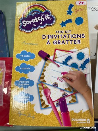 Carte Anniversaire, Remerciements, Félicitations « Lot Tendre et Charmant » – Djudi'Scrap Attends environ 10 minutes que la peinture à gratter sèche. Activité Manuelle Fête Sachets De 12 Signets à Gratter Kit Dujardin Scratch It Invitations à Gratter Pour cela, prends la peinture à gratter et applique-la sur les stickers prédécoupés en forme de bonbon. Kit créatif Dujardin Sratch It InvitationsPersonnalise tes cartes avec les messages de ton choix. Grâce à tes peintures métallisées, peins tes stickers et découpe-les avec ta perforatrice ou utilise les stickers holographiques.Colle tes stickers sur tes cartes en recouvrant tes messages et offre-les Dujardin Créations - a Fabrique à Goes - Pack L Desserts gourands... Avertissement De Sûreté Attention ! Ils sont déjà prêts à l’emploi et n’attendent plus que d’être collés et grattés ! Un anniversaire ? Une pyjama party ? Une fête avec tous tes amis ? Fabrique tes propres invitations à gratter ! Crée ton sticker à gratter ! Crée plus de 100 messages à gratter tout en t’amusant, seule ou avec des copines. Prends ton invitation et personnalise-la avec toutes les informations nécessaires !