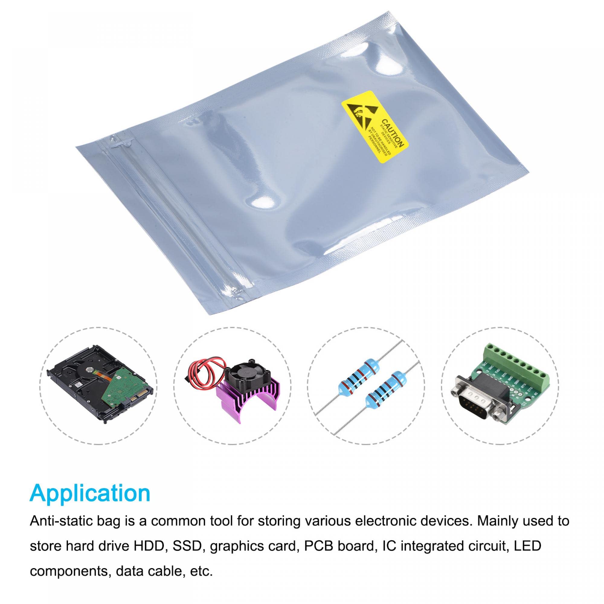 Sourcing map Lot de 6 écussons thermocollants en tissu pour réparation Brut 30x40cm Grands sacs en filet de lavage, sac à linge en maille Fine... Stockage Sécurisé Cartes Graphiques Antistatique Sacs Blindage Sac 10pcs 30x40cm Refermable Avec Étiquettes Sacs Protection HDD SSD Qu'est-ce que c'est?Le sac antistatique est un outil commun pour le stockage de divers appareils électroniques. Comment l'employer?Étapes de l'installation: 1., préparez des sacs antistatiques de dimension appropriée; 2., placez toutes sortes d'appareils électroniques dans le sac. Sacs à Lavage, Sacs à Linge en Maille avec Crampon Grand Sac de Filet... Il est principalement employé pour stocker les disques durs, les disques SSD, les cartes graphiques, les cartes de circuits imprimés, les circuits intégrés, les composants LED, les câbles de données, etc. Le sac antistatique adopte la conception d'une bande de scellement, refermable, et une forte performance de scellement; Le sac antistatique est transparent, permet une observation claire des appareils électroniques dans le sac; réutilisable, étanche et protège les appareils électroniques. Veillez à choisir un sac antistatique de dimension appropriée, notamment en ce qui concerne la largeur et la hauteur du sac. Étapes de l'installation: 1., Préparez des sacs antistatiques de dimension appropriée; 2., placez toutes sortes d'appareils électroniques dans le sac.