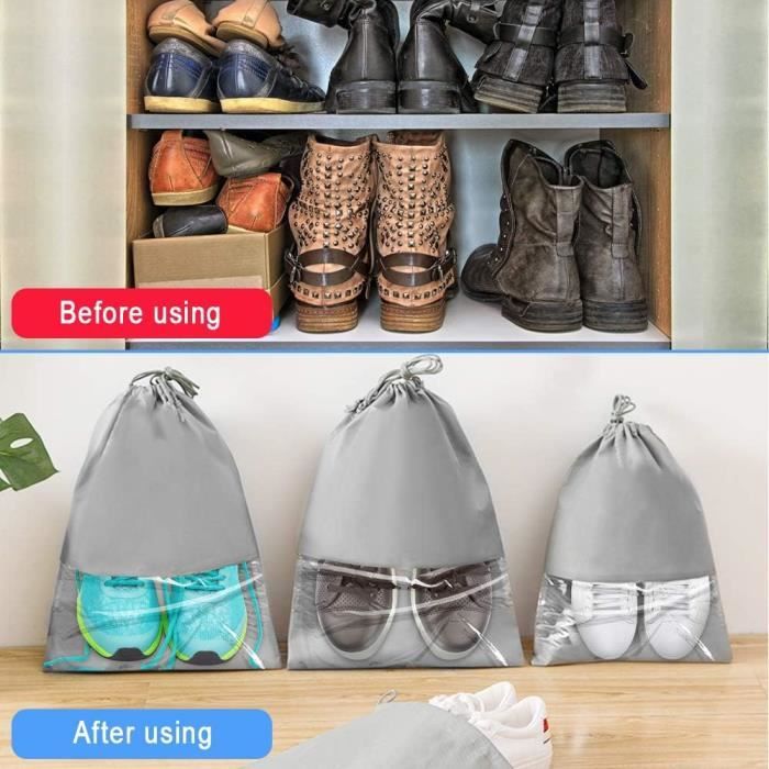 Pochette Rangement Sacs À Chaussures Imperméables Pour Le Voyage, Pochette De Rangement Et Pochette Chaussures Fermeture éclair 39cm Sac de rangement pour chaussures - Voyage ou Sport - ON RANGE TOUT Bagentry Lot de 8 sacs à chaussures de voyage étanches et portables 【Utilisation Polyvalente】Ce sac à chaussures voyage peut également servir de trousse de toilette, sac à linge, housse pour accessoires ou sac rangement chaussures multifonction. Couvre-chaussures à fermeture éclair avant pour hommes et femmes... Idéal pour les vacances, les voyages d’affaires ou une utilisation quotidienne à la maison Le design pliable permet de ranger facilement le sac pour chaussures voyage dans une valise, un sac à dos ou une armoire. Une finition soignée assure une protection durable de vos chaussures lors de vos déplacements Peut également être utilisé comme sac rangement chaussures à la maison ou dans la valise