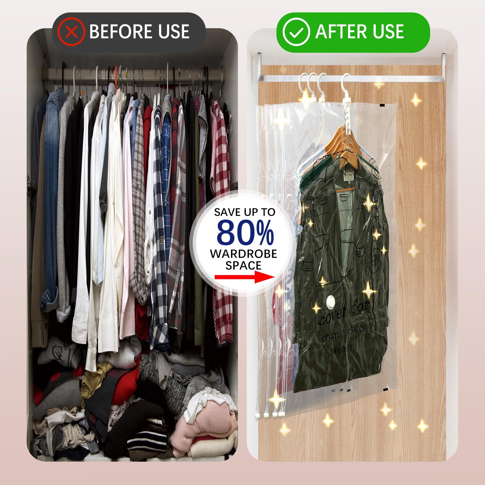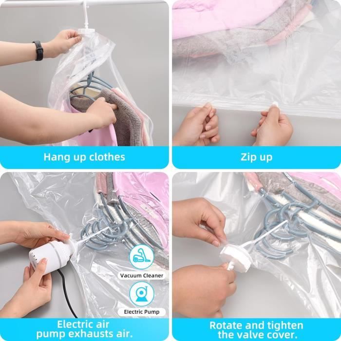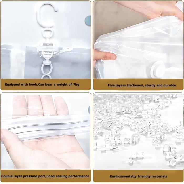 TolleTour Sacs De Rangement Sous Vide. Lot De 12 Housses De Rangement Sous Vide Avec Pompe Lot De 12 Sacs De Rangement Sous Vide 80870033 【Rangement efficace & protecteur】Chacun de nos sacs sous vide dispose d'un crochet robuste,Peut être tourné à 360 degrés,qui dispose de 4 boucles pour une identification facile. Housses Réutilisables PA PE Lot De 5 Sacs De Rangement Sous Vide à Suspendre 110x70 Cm Avec Pompe – Housses Sous Vide Pour Vêtements, Robes, Costumes, Manteaux, Vestes, Sac Sous Vide Vetement Housse Sous Vide Pour Lit Double bande de scellage des bords,Ces sacs de rangement sous vide sont étanches à l'eau et à l'air, ils protègent vos costumes, manteaux, vestes et vêtements de la poussière, de l'humidité, des odeurs et des mites et les gardent longtemps sans odeur. Housse rangement sous vide : la sélection produits Leroy Merlin de ce samedi au meilleur prix ! Retrouvez ci-après nos 2266 offres, marques, références et promotions en stock prêtes à être livrées rapidement dans nos magasins les plus proches de chez vous Ces 6 sacs de rangement sous vide vont révolutionner votre placard ! Avec leurs dimensions de 110 x 70 cm, ils sont parfaits pour les manteaux, costumes... Il rend votre vie à la maison tellement plus facile lorsqu'il est dans votre armoire. Le crochet multiple vous permet de suspendre plusieurs objets et d'organiser votre armoire de manière optimale. 【Conseil】Veuillez ne pas retirer le bouchon en caoutchouc du sac à vide pendant l'aspiration afin de garantir un scellage hermétique et un gain de place optimal. 【Matériau de haute qualité】Les sacs sous vide sont fabriqués à partir d'un mélange de PA&PE de haute qualité, durable, souple et flexible, de sorte qu'ils peuvent être réutilisés de nombreuses fois. La suspension verticale est plus résistante aux plis, pour économiser 80% de l'espace de votre penderie. Spécification du produit :Matériau : PA&PECouleur : comme indiqué sur l'imageTaille : 110*70CM Le paquet comprend :6pcs* sac de rangement pour vêtements