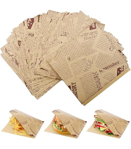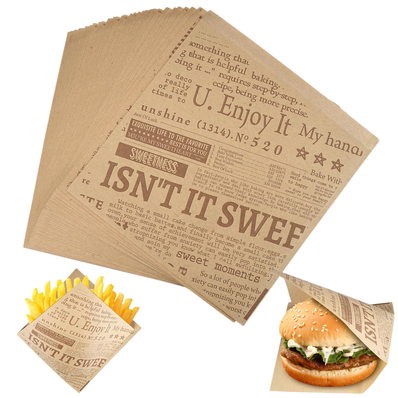 100 feuilles de papier pour hamburger,Papier pour sandwich Vous pouvez y mettre rapidement vos aliments et y accéder facilement, tout en gardant vos doigts propres et sans huile. Sacs Papier Burger Lot De 100 Sacs à Frites En Papier Pour Panier Papier Hamburger Appareil Hot Dog Même les hamburgers émiettés avec sauce et fromage sont bien fermés., 2., Ces sacs à kebab en papier ont un design semblable à un journal avec une impression nette et des couleurs résistantes, des coupes propres, ne se déchire pas et un look vintage léger., 3., Les sacs à goûter en papier sont la solution parfaite pour garder les doigts propres tout en profitant de hamburgers et de sandwichs. 100 Feuilles Papier Eballage Alientaire,Papier D'Eballage Frites... Sac Alimentaire Et Pour Sandwich - 500 Sacs Papier Kraft Marron Ou... Emballage : vous recevrez un total de 100 sachets en papier. Le papier est lisse, non toxique, inodore, imperméable, résistant à la graisse et peut entrer en contact direct avec les aliments Ces sacs mesurent 18 x 18 cm, avec nos sacs, vous n'avez plus à vous soucier d'avoir de la graisse sur les mains lorsque vous mangez Taille:18*18cm Spécifications: 1., Ces sacs à goûter en papier sont très bien fermés. EMBALLAGE À BURGER PRATIQUE : le sac à burger étanche à la graisse est muni d'une ouverture triangulaire, avec une grande ouverture pour un rangement facile et une utilisation rapide. Spécifications: Nom : papier sandwich Matériel: papier Couleur : marron., Quantité : 100 pièces.