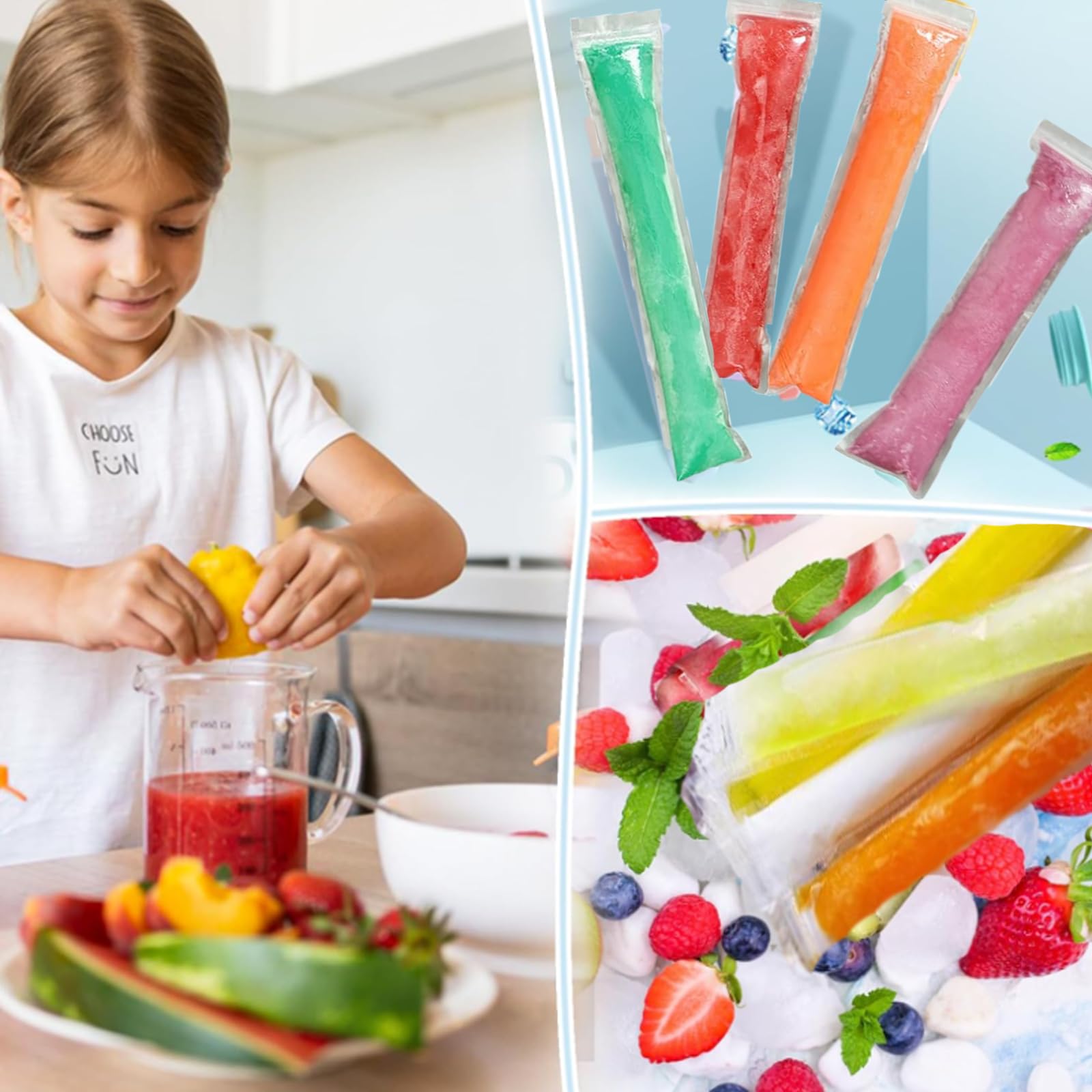 Moule Mister Freeze 150pcs Sacs Popsicle, Moule à Glace, Sacs à Glace, Sans BPA, Popsicle Moule, Popsicle Pochettes Avec Entonnoir Pour Yaourt, Bonbons Glacés, Crème Glacée Sacs Congélation Snacks Sains 200 Pièces Sacs Popsicle,Sac a Sucette Glacée Jetable Sacs à Sucettes Glacées pour Poulet,1000 Pièces,Zones,Faits Maison,Tube... Vous pouvez Moule à la Glace Pop emmener où vous voulez., 3., Sac pour Bâtonnets de Yaourt convient pour faire vos propres popsicles pour le camping, les pique-niques, les collations,les fêtes d'enfants, les fêtes d'anniversaire, les voyages à la plage et plus encore. High quality material:Les Sacs Popsicle glacées jetables sont fabriqués en plastique non toxique sans BPA, étanche, avec une fermeture solide, un joint latéral renforcé pour éviter la rupture lors de la congélation, et un entonnoir en silicone de qualité alimentaire Emballage inclus:Comprend 200 Sacs de Sucettes Glacées et 1 entonnoir en silicone vert. Caractéristique: 1., Pochettes Popsicle Moule, les enfants peuvent non seulement manger leurs sucettes glacées préférées,mais plus important encore, elles sont propres, hygiéniques et saines., 2., Ces Sacs de Formes de Popsicle sont très pratiques à emporter. Pour l'utiliser, il suffit d'ouvrir l'ouverture Facile à utiliser:Les jus sont faciles à verser dans les DIY Popsicle Pochettes, utilisez un entonnoir pour remplir vos sacs de moule à pop avec vos propres ingrédients, fermez la fermeture éclair en haut. Largement répandu:Popsicle Pochettes pour faire des bâtonnets de glace maison, des bâtonnets de yaourt, des bonbons glacés, les sachets entonnoirs peuvent être utilisés pour conserver des liquides épais comme le yaourt, la glace, etc. Contenu du colis]Vous recevrez 200 sacs popsicle et 1 entonnoir en silicone pour fabriquer vos propres popsicles. · [Matériaux de sécurité]Popsicle...