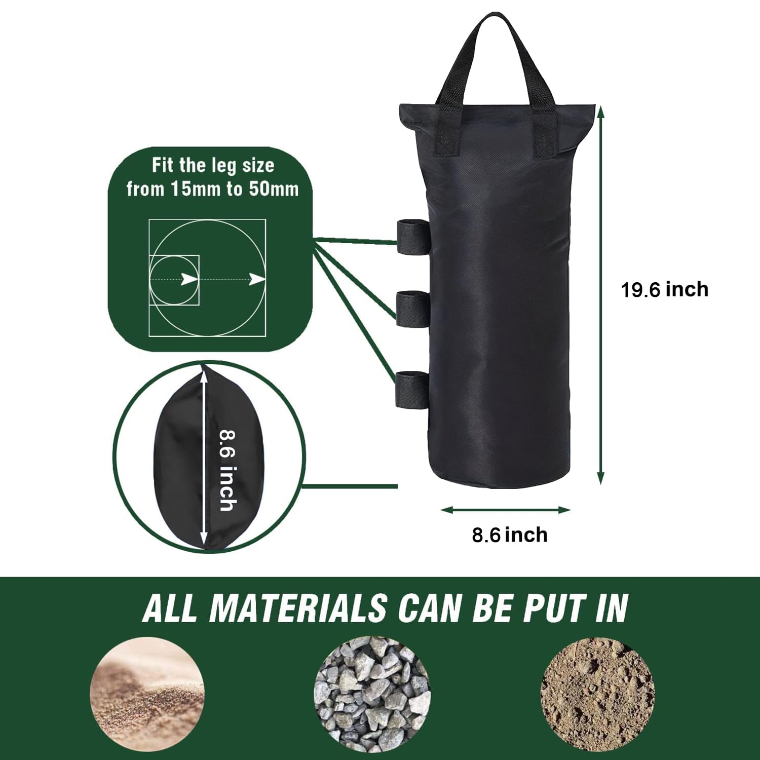 Rideaux extérieurs jardin patio gazebo rideaux occultants coupe-vent Poids de lestage à remplir - Pour tente pliante Ancrage équipement Camping Tonnelle Sacs À Sable Pour Photographie - Lests Anti-Vent Extérieurs Pour Sacs Lestage équipement Photo Vidéo Dotés de surfaces antidérapantes, ces poids en sacs de sable remplissables et portables offrent un ancrage fiable pour une multitude d'utilisations, telles que les sacoches, le matériel vidéo, les trépieds photo, les auvents, les tentes, les parasols, les chaises de pêche, les tables de pique-nique, l'équipement de camping, les tonnelles, les protections solaires, les abris solaires et les meubles d'extérieur. En raison de différentes mesures manuelles, veuillez permettre une différence de taille de 1 à 2 cm. Sac de poids de lancer Équipement d'arboriste portable Anneau en métal... Spécifications du produit:Nom du produit: poids de sac de sableCouleur du produit: noirListe de colisage:1 x poids de sac de sableNote:En raison de différents paramètres d'éclairage et d'écran, la couleur de l'élément peut être légèrement différente de l'image. Polyvalence: Conçus avec un ajustage en porte-à-faux pour mâts et des points de fixation multiples, ces poids stabilisent efficacement les ombrages contre , permettent un réglage angulaire rapide, et s'intègrent parfaitement à tout équipement extérieur grâce à leur adaptabilité multidirectionnelle. Stabilité d'ancrage : Sacs de lestage dotés d'une large base antidérapante et d'une structure sécurisée pour une fiabilité de portance optimale, une stabilité renforcée contre les forces du vent dans les conditions difficiles grâce à leur ancrage au sol fiable. Durabilité optimisée: Fabriqués en tissu composite anti-déchirure avec structure double couche renforcée, ces poids de sable garantissent une longévité extérieure exceptionnelle, résistant aux conditions météorologiques extrêmes tout en offrant une protection UV et anti-poussière fiable