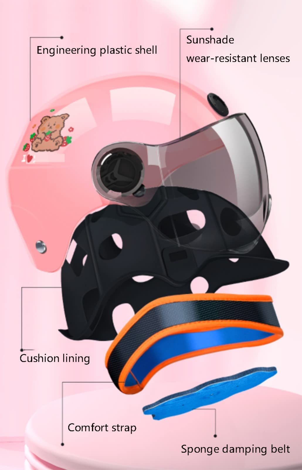 Casque Moto Enfant Dafy Enfants Moto Mignon Demi Casque Quatre Saisons Avec Visière Scooter Extérieur Casque Électrique Pour Enfants Garçons Filles 2-12 Ans F, 48~56CM Casque Avec Visière Solaire Casque jet de Moto rétro Casque moto poids léger Casque de Casque De Moto Rétro à Visage Ouvert Sécurité Demi-Casque Pour Hommes... Design élégant : ce casque de moto pour enfant présente une variété de motifs de dessins animés mignons, rendant la conduite plus amusante. Son design élégant et rétro est très apprécié des enfants. Composé d'une coque ABS, d'une épaisse doublure en mousse EPS et d'une mousse épaisse et douce, ce casque est confortable. Informations sur le casque : Style : Demi-casque Couleur : Options multicolores Taille : Taille unique (48-55 cm). Conception légère : ce casque de moto tout-terrain pour enfants ne pèse que 500 grammes, ce qui garantit qu'il reste confortable même pendant les longs trajets. Doublure confortable : La doublure du casque de moto pour enfant est douce et confortable, absorbante et respirante en toutes saisons. La sensation de port est excellente, tout en assurant la respirabilité du casque. Catalogue Casque visage ouvert | Centre de Liquidation du Québec