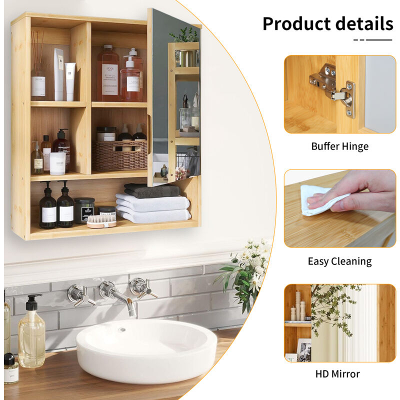 Charge max de l'étagère : 15 kg., Assemblage requis ● Conception et fabrication de qualité (MDF classe E1) et bois de bambou pour un usage pérenne ● Montage facile à l'aide du kit d'installation complet fourniSpécifications:● Couleur : blanc ● Matériaux : bambou, MDF ● Dimensions totales : 45L x 15l x 58,5H cm ● Dimensions du miroir : 42,5L x 43H cm ● Dimensions de l'étagère : 43L/13,5L x 13,5l x 13,5H cm ● Charge max : 15 kg (total), 6 kg (grande étagère), 3 kg (petite étagère) ● Réf. Miroir Salle De Bain Miroir Mural De Salle De Bain Rectangulaire Avec étagère Nymphea Meuble Sous Lavabo ● Conception murale : gain de place ● 3 étagères latérales + grande étagère inférieure pour ranger vos objets de salle de bain ● Usage polyvalent possible pour utilisation dans votre salle de bain, dressing, chambre, etc. HOMCOM Miroir pleine longueur avec étagère – Miroir de sol en bambou avec 6 tablettes de rangement HOMCOM Miroir mural rond avec 2 étagères de rangement pour salle de... SOLIDE ET RESISTANT : Meuble en MDF et bambou, résistant à l'humidité, cette étagère miroir trouvera donc parfaitement sa place dans votre salle de bain, vos toilettes ou encore votre couloir 834-673V00WT● Note: Si vous souhaitez la reprise de votre ancien produit, merci de consulter nos CGV sur les modalités de reprise et de nous joindre via la messagerie. SPÉCIFICATIONS : Dimensions totales : 45L x 15P x 58,5H cm. Vous pourrez y mettre des produits de beauté, ciseaux, pince à épiler, rasoirs, etc., ., ., On craque pour le côté double emploi de ce meuble, à la fois étagère de rangement et miroir de salle de bain. Contenu de L'Emballage: Descriptions Longues:Ce superbe miroir de salle de bain avec 3 petites étagères latérale et 1 grande étagère inférieure vous permettra de vous maquiller, coiffer, vous préparer plus facilement en ayant un accès immédiat à vos produits.