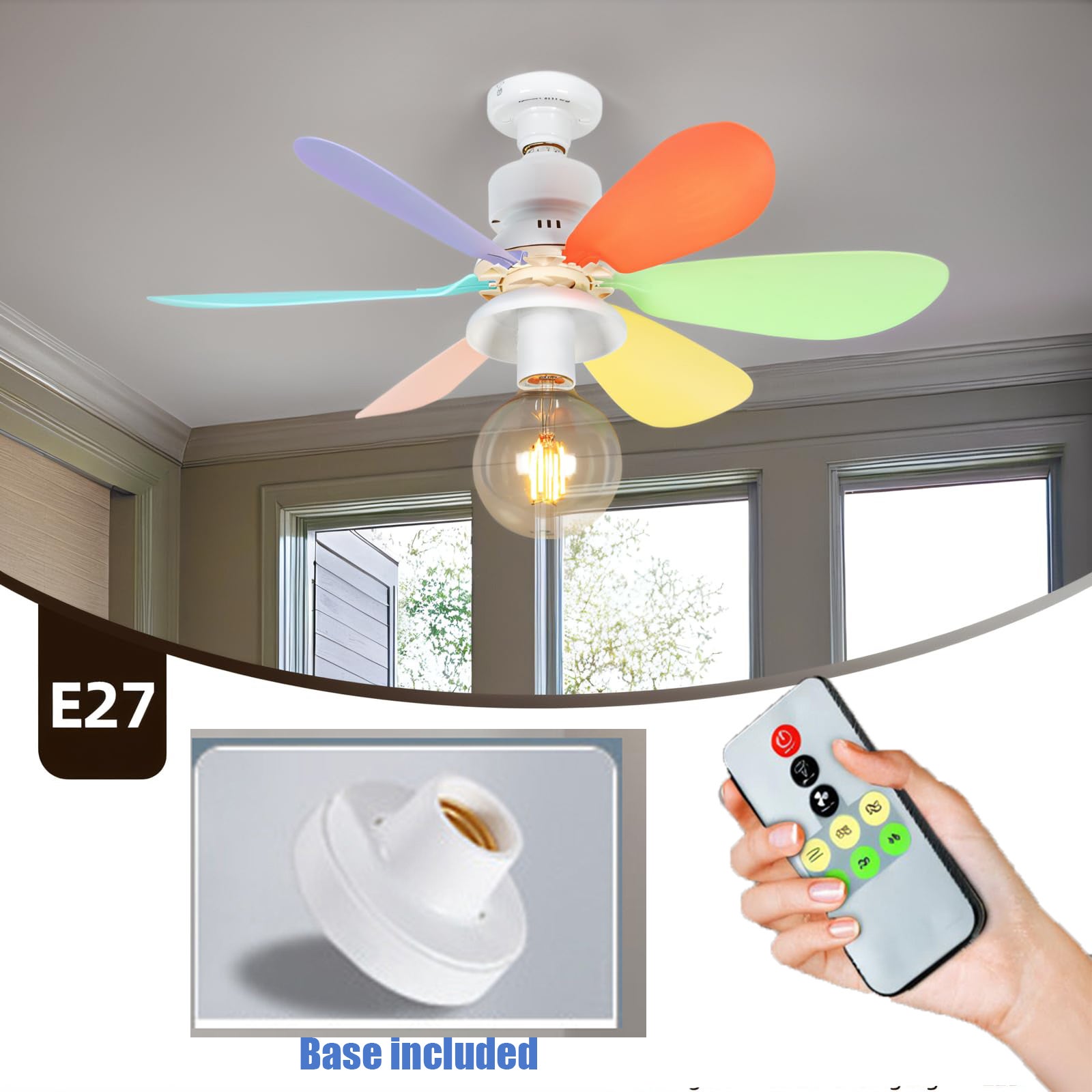 Ventilateur de plafond avec lumière, silencieux E27, avec télécommande Ventilateur Lumière LED Intégrée E27 Petit Ventilateur De Plafond à Vis E27, Avec Télécommande, Pour Salon, Chambre à Coucher, Lampes De Ventilateur LED 40W, Décoration De Cuisine Et De Maison Ventilateur Pour Salon Cuisine Ventilateurs de plafond 48 W avec lumières, ventilateur de plafond RVB... TÉLÉCOMMANDE PRATIQUE: Ce ventilateur de plafond est équipé d'une télécommande sans fil pratique pour allumer, éteindre et régler la vitesse à distance. Ventilateur de plafond RGB avec rallonge et télécommande, trois... 6 VITESSES RÉGLABLES: Avec 6 vitesses réglables, trouver le débit d'air parfait est un jeu d'enfant pour tout moment de la journée. MINUTERIE ET DIMMER: La minuterie réglable de 0 à 480 minutes et la fonction de gradation de la luminosité offrent plus de commodité.