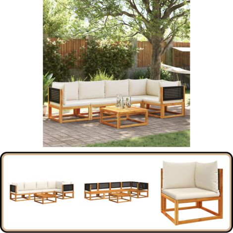 Hauteur d'assise (coussin compris) : 35 cm Cet ensemble de mobilier de jardin est fabriqué en bois d'acacia massif, un bois dur tropical, qui résiste aux intempéries et est très durable. Les housses de coussins sont amovibles et lavables. Hauteur d'assise (hors coussin) : 29 cm Couleur : bois clair, gris foncé (coussin d'assise) et blanc (coussin de dossier) Couleur du coussin : gris foncé · Matériau : bois d'acacia massif avec finition à l'huile, tissu (100 % polyester) · Dimensions de la table : 68 x 68 x 29 cm (L... Cet ensemble est également livré avec des coussins d'assise et de dossier très confortables et bien rembourré Dimensions du canapé de milieu : 60 x 65 x 65 cm (l x P x H) Notre ensemble de canapé de jardin sera un choix parfait pour l'heure du café ou pour vous détendre. Ensemble Canapé Jardin 5 Pièces Salon De Jardin VidaXL Salon De Jardin 5 Pcs Avec Coussins Mobilier De Patio Meubles D'Extérieur Canapé D'angle Terrasse L'ensemble de salon de jardin en bois ajoute un look vintage et est spécialement conçu pour votre jardin, patio ou autre espace de vie extérieur ! L’ensemble de meubles d’extérieur est construit en bois d'acacia massif avec une finition à l’huile, ce qui le rend stable et durable. Les coussins épais d'assise et de dossier rendent l'ensemble doux pour vous y asseoir. Grâce au... Notre ensemble de canapé de jardin sera un choix parfait pour l'heure du café ou pour vous détendre Dimensions de la table basse : 90 x 55 x 35 cm (L x I x H) Profondeur du siège : 60 cm Les housses de coussins sont amovibles et lavables Salon De Jardin Avec Coussins 6 Pcs Bois D'acacia Solide - Salon De Jardin Avec Coussins 6 Pcs Bois Dacacia Solide Salon De Jardin Meubles De Jardin Meubles Exterieur Acacia Design Moderne 86022260 Dimensions du tabouret : 60 x 60 x 29 cm (L x l x H) Housses de coussin amovibles et lavables Dimensions du canapé d'angle : 65 x 65 x 65 cm (I x P x H) Matériau : bois d'acacia massif