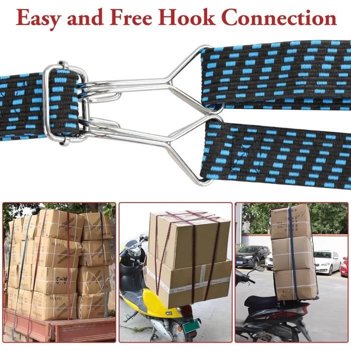 tendeur sandow avec crochets acier Crochets Métalliques : L'extenseur à bagages est équipé de crochets en acier inoxydable qui sont robustes, durables et ne rouillent pas. Tendeurs élastiques 4Pcs Tendeurs Elastique Avec Crochets, Sandow Elastique, Tendeur Plat, Sandow Reglable Elastique Avec Crochet Métal (1 M De Long) - Bricolage Tendeur Elastique Bandes Élastiques de Haute Qualité : Fabriqué à partir de fil de latex premium et de fibres oxford, l'extenseur de tension avec crochet est durable et robuste avec une force de traction 2,5 fois supérieure et une forte force de rebond Idéal pour être utilisé sur une moto ou un vélo, grâce à ses 8 cordes élastiques qui aident à maintenir la charge. Crochet autobloquant qui permet de régler très facilement la longueur nécessaire, facilitant l’installation Elle est largement utilisée pour les barres de toit, le transport de bagages sur moto/vélo, la fixation de cartons de déménagement, les tentes de camping, les auvents, les lignes à linge temporaires... Conception plate la charge est en contact avec une plus grande zone et l'élastique de tension large fixe la charge en la regroupant pour une plus grande stabilité et sécurité Les fixations solides des anneaux assurent la sécurité et empêchent efficacement la rupture des cordes aux points de fixation Application Polyvalente : Le tendeur en caoutchouc large peut être utilisé comme un outil indispensable pour sécuriser les cargaisons, les bâches, les bagages et les charges sur les voitures, les barres de toit, les chariots, les motos et les vélos. Paket Enthält: 4 x Cordes à Bagages de 1 m Données du produit: Matériau : Polypropylène + Fil de Caoutchouc Couleur : Bleu Longueur : 1m largeur : 3cm Épaisseur : 4mm Remarque: En raison des différents moniteurs et de l'éclairage, il peut y avoir des différences de couleur entre l'image et la réalité. Design Plat : L'élastique de tension réglable pour bagages au design plat peut empêcher le glissement et améliorer la sécurité du chargement. qui vous faciliteront la vie.