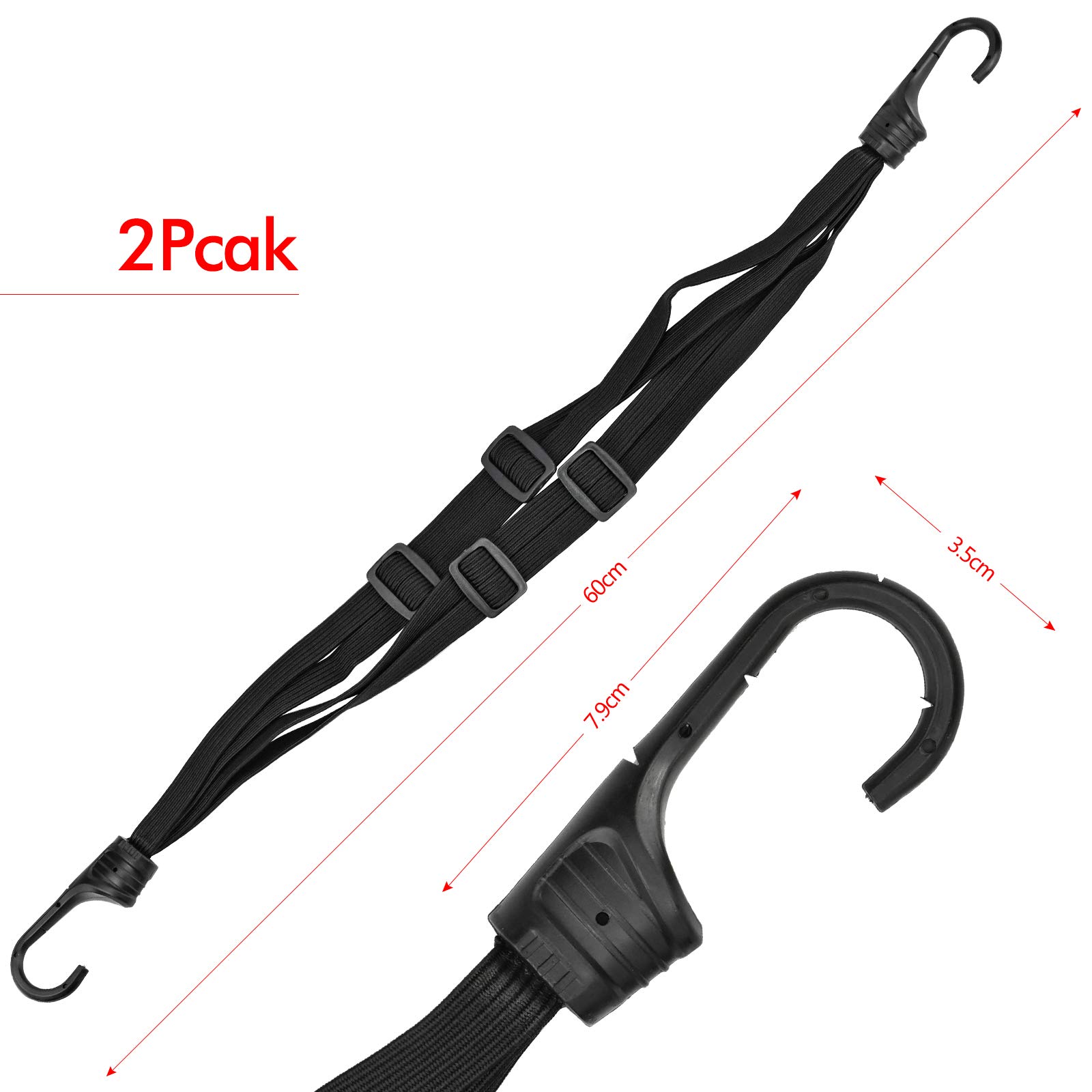 Sangle Vélo Double Crochet Lot De 2 Sangles à Bagages Avec Double Crochet Pour Vélo Et Sangle Fixation Casque Vélo Courroie universelle pour lunettes Lot de 2 sangles porte velos 40 cm Utilisation d'une seule main : utilisable même avec des gants - enclenchez les crochets sur le porte-bagages, faites glisser la bande Velcro, le tour est joué en 3 secondes. Lot de 2 cordons élastiques de fixation avec crochet pour vélo, bagages... Pas de nœuds fastidieux. 1 sangle courte de 60 cm. 60 cm pour casque/sacs + 90 cm pour les grands bagages : combinaison optimale de longueurs – Sécurise les sacs de courses sur le porte-bagages, les sacs à dos de voyage sur la moto ou les accessoires de camping lors d'un voyage en plein air. Caractéristiques : Matériau : nylon + acier + bande élastique Couleur : noir.