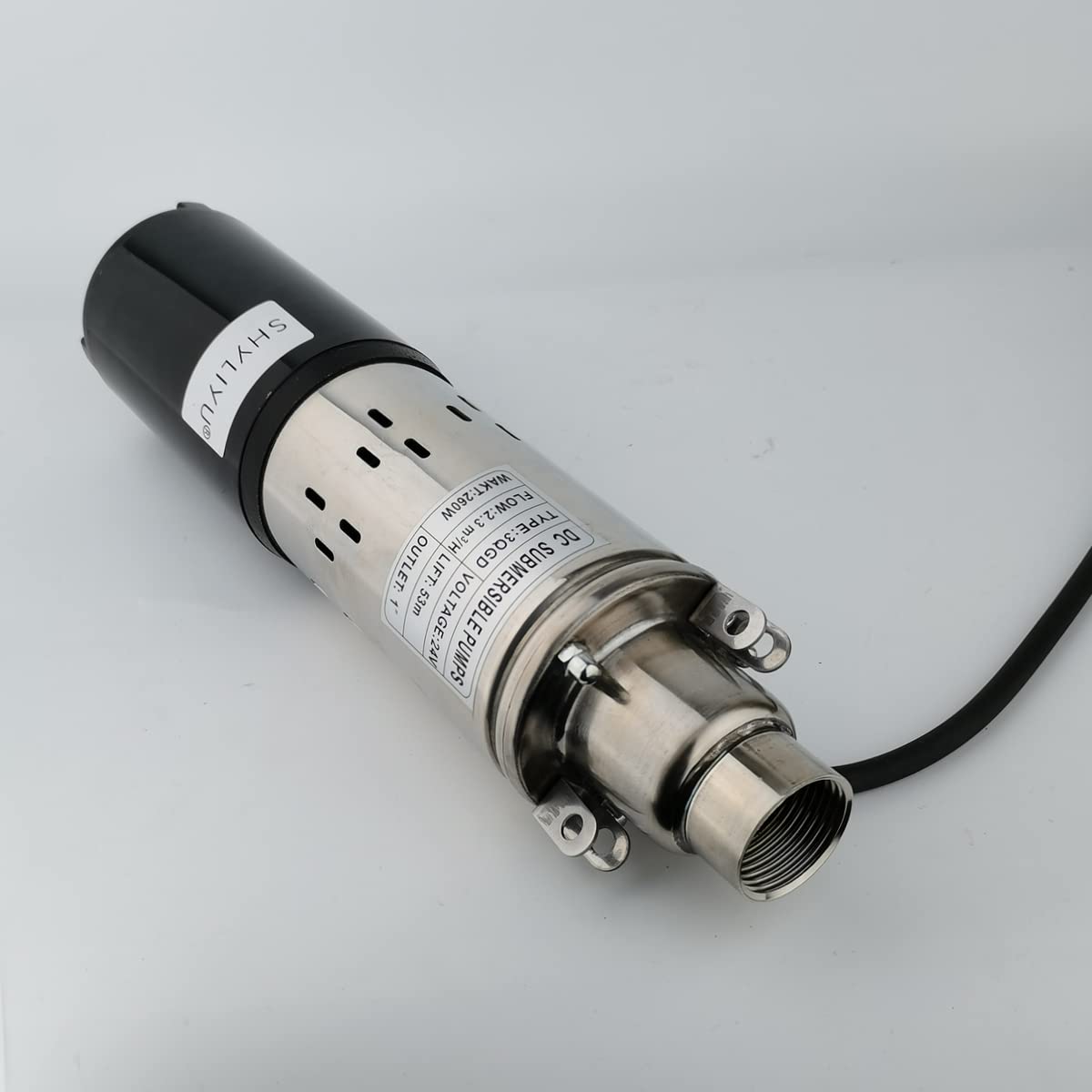 Pompe 1320L/H 11m Refroidissement Circulation SHYSKY Pompe à Eau Sans Balais 12 V DC 50H-12150S 55 W 15 M Pompe Solaire Brushless COC-HURRISE pompe submersible Mini pompe à eau sans balai DC pour Vvikizy pompe à eau CC Pompe à eau solaire DC, Mini pompe Submersible sans balais pour fontaine... La caractéristique typique est une valeur de levage (pression de sortie) assez élevée, mais avec un débit relativement faible, adapté à certains systèmes à micro-pression. Submersible, IP68 étanche ; Température de fonctionnement maximale : 100 degrés ; Large gamme de tension de fonctionnement ; Sans entretien; Peut être utilisé pour pomper de l'eau, de l'huile et d'autres liquides non corrosifs (des liquides spéciaux doivent être pré-testés à l'avance) Alimentation variée : source électrique CC, batterie ou panneau solaire, etc ; Démarrage progressif avec un faible courant d'appel, particulièrement adapté aux systèmes solaires qui ne peuvent pas fournir un courant d'impulsion de démarrage trop élevé; L'OEM et l'ODM sont acceptés sur la base du MOQ et de la demande exacte des clients Caractéristiques: Modèle : DC55F-12110S (pompe triphasée sans balais conçue en courant continu) Taille : tailles et poids : 109 mm x 91 mm x 71,5 mm ; ~700g Matériau : plastiques techniques Entrée : G1/2 (diamètre extérieur 20 mm) Sortie : G1/2 (diamètre extérieur 20 mm) Résistance thermique : -20 ~ 100 °C Tension nominale : 12 V CC. La pompe fonctionne à la tension nominale : lorsqu'il y a un débit d'entrée insuffisant ou aucun débit d'entrée (ou une bulle d'air importante à l'intérieur), la protection DRY-RUN de la pompe sera déclenchée. performances d'exécution. Cette protection DRY-RUN vise à réduire considérablement les dommages physiques de la pompe dus à un FONCTIONNEMENT À SEC de longue durée dans certains scénarios Moteur pas à pas électrique, 2 phases, 4 fils, san... – Grandado