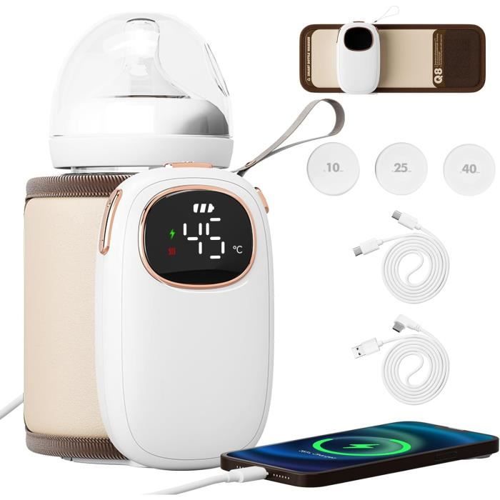 Les chauffe-biberons peuvent chauffer à 360° et sont dotés d'une veilleuse pour faciliter la préparation du lait la nuit. Le chauffe biberon sans fil rechargeable est également très pratique pour les voyages. Il peut être utilisé en voiture, en camping ou en déplacement, sans être... Il chauffe rapidement les biberons, réchauffe les aliments et décongèle le lait maternel. CHAUFFAGE RAPIDE: Chauffe biberon portable est une excellente solution pour les parents actifs, car il maintient les boissons à température constante pendant 5 à 8 heures, permettant à votre bébé de boire du lait à la bonne température à tout moment. Fil Chauffant Chauffe Biberon Nomade Portable 6000mAh, Chauffe Biberon Sans Fil 18W Rapide Avec 6 Niveaux De Temperature 38 50c Compatible 99 Biberons Veilleuse Led Et Usb C Pour Voiture Lait Maternel 92211089 Chauffe Biberon Portable Sans Fil L'intérieur est composé d'une couche d'éponge haute densité sans BPA. Caractéristiques: 1., Veilleuse: Veilleuse pour une traite en toute sérénité, chauffe-lait pendant la charge et l'utilisation., 2., 6000 mAh: Chauffe-biberon nomade. Facile et pratique à utiliser, il est adapté aux exigences d'isolation de différentes marques de lait en poudre Il répond aux besoins variés de chaque maman en matière d'alimentation infantile CONVIENT À LA PLUPART DES BIBERONS: Ce chauffe biberon portable est compatible avec la plupart des biberons standard (diamètre : 8 cm). Il peut être alimenté par une voiture, une alimentation rechargeable ou un chargeur de téléphone portable, ce qui le rend idéal pour les voyages, les sorties et autres activités La température peut être surveillée en temps réel. Parents débordés, ce chauffe-biberon HOVCEH va vous changer la vie ! Plus besoin de chercher une prise en balade - la batterie 6000mAh tient chaud le biberon pendant des heures Haut de gamme, il assure une chaleur plus stable et maintient une température constante plus longtemps 3., Velcro: La fermeture Velcro s'ajuste librement pour s'adapter à différents diamètres et formes de biberons 4., Réglage de la température sur 6 niveaux: Chauffe-biberon nomade avec températures réglables de 38/40/42/45/48/50 °C, pour une température optimale et sûre., Consommation 5., Notre chauffe-biberon est fabriqué à partir de matériaux de haute qualité, sans BPA, garantissant la protection du lait de votre bébé contre les substances nocives Caractéristiques: Nom du produit: Chauffe-biberon de voyage Capacité: 6000 mAh Dimensions: 13,5 x 8,6 x 8,6 cm Puissance: 18 W Poids: 320 g Temps de charge: Charge rapide, environ 3 heures Temps d’isolation: 6 à 10 heures (plus la température est élevée, plus le temps d’isolation est court) Contenu de l’emballage: 1* chauffe-biberon de voyage 1* câble de charge 1* manuel d’utilisation Attention: Assurez-vous que le fond du biberon est bien ajusté à la tête de contrôle de température à ressort située sur la base, sinon le thermostat ne pourra pas mesurer la température, ce qui entraînera des températures élevées. Fabriqué à partir de matériaux de haute qualité, ce chauffe-biberon portable est très robuste et garantit une longue durée de vie Chauffe Biberon Portable HOVCEH 6000mAh - Réchauffeur Nomade LCD 6 Températures Avec Veilleuse Chauffe Lait 6000mah