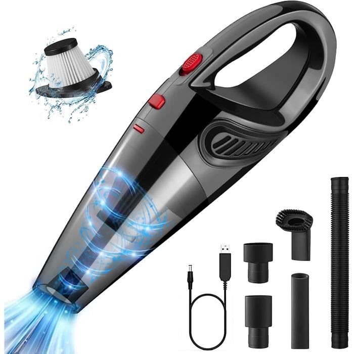 Aspirateur Voiture Puissant 28000Pa TASVAC Aspirateur Balai Sans Fil, 28000Pa Aspirateur Sans Fil Puissant, 6 En 1 Aspirateur Sans Car Accessories h.koenig Aspirateur nettoyeur 3 en 1 Black Friday Clearance Maison et jardin Aspirateur à Main Sans Fil, 120W Moteur Puissant, Aspiration 60 000 tr/min, 9 000 Pa, 2 Filtres Lavables & 3 Ajutage, Rechargeable USB, pour Maison Voiture... 【Batterie Rechargeable et Charge Rapide】L'aspirateur de voiture est doté d'une batterie haute capacité intégrée offrant jusqu'à 35 minutes d'autonomie et se rechargeant en seulement 2 heures. Le filtre HEPA est lavable, mais assurez-vous qu'il soit parfaitement sec avant de le remettre en place 【Compact, Léger et Bien Conçu】Cet aspirateur de voiture sans filest fourni avec un sac de rangement pour un transport et un rangement faciles. Que vous ayez besoin de nettoyer l'intérieur de votre voiture, de gonfler une bouée ou d'effectuer un nettoyage complet, cet aspirateur de voiture répondra à tous vos besoins Son bac à poussière transparent permet un vidage rapide et pratique. Cet aspirateur de voiture arbore un design élégant et une utilisation simple. Avec un poids de seulement 400 g, comparable à celui d'une bouteille d'eau minérale, il est facile à transporter et à ranger Il a 7 buses différentes 1 tuyau pour tout nettoyer : sièges, tapis, crevasses, même les poils d'animaux. Le bac fait 210 ml et les filtres HEPA sont lavables...