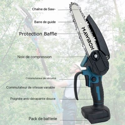 Tronçonneuse / Élagueuse Sur Perche à Batterie Pro 530 IPT5 Husqvarna Sans Batterie Et Chargeur Perche télescopique ajustable de 2,7 à 3,6 m – S'extension de 9 à 9,5 pieds, cette tronçonneuse permet un accès facile aux branches hautes et aux zones difficiles d'accès, en faisant un outil idéal pour l'élagage professionnel, parfait pour une utilisation en taille haie télescopique batterie. Taille Haie Télescopique Tronçonneuse,Élagueuse électrique Sur Perche - Élagueuse à Perche Sans Fil , Batterie 2x5.5Ah -compatible Avec La Batterie Makita - Jardin Mini Tronconneuse A Batterie Elle peut également être utilisée comme mini tronçonneuse à batterie pour des tâches plus petites. Taille Haie Téléscopique Black Et Decker - Partager Taille Bonne Taille-haie Electrique à Perche Télescopique - Z512 - Coupe-arbuste... Design durable et léger – Fabriquée avec des matériaux métalliques et plastiques, cette tronçonneuse sur perche est légère mais robuste. Autonomie longue durée – Alimentée par deux batteries 1,5Ah, cette tronçonneuse sur batterie permet jusqu'à 20 km de coupe, garantissant de longues heures de travail sans recharge fréquente. Elle offre une prise en main confortable et une utilisation sans effort, idéale pour être utilisée comme taille haie électrique, pour l'entretien du jardin. Puissance du moteur sans balais premium – Équipée d'un moteur sans balais de 550W, cette tronçonneuse électrique offre des coupes puissantes et efficaces. Idéale pour des projets de jardin de grande envergure et parfaite pour être utilisée comme sécateur électrique sans fil pour une taille précise. )Le paquet comprend :1 x scie électrique1 x perche télescopique2 x batteries1 x chargeur1 x manuel d'utilisation2 x chaînes1 x plaque de guidage1 paire de gants1 paire de lunettes de protection