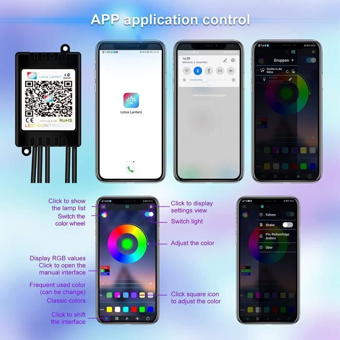 Imperméable, extrêmement faible chaleur, le produit est installé dans l'espace tactile et sûr pour les enfants. Garantie sans souci : Les lumières intérieures de voiture Maodaner prennent en charge 90 jours, garantie de satisfaction à 100 % et garantie d'un an. Vous pouvez choisir votre mode préféré, comme : couleur fixe, rebond de couleur ou mode de détection sonore. Si la tension est supérieure à la tension limite, les composants seront endommagés. Bande LED Intérieure Voiture Bande Lumineuse DEL En Acrylique Pour Intérieur De Voiture, Application Sans Fil, éclairage D'ambiance RVB 14 En 1, 593 DEL En Fibre Optique De 4 M, 16 Millions De Couleurs, Son Actif Led Voiture Interieur Sans Fil La télécommande ne peut pas être endommagée, veuillez donc l'utiliser sous tension spécifiée pour obtenir un bel effet d'origine., 3., Les fibres optiques ne doivent pas être pliées en deux ou en trop bent, sinon la lumière ne passe pas après des dommages. *4(21) 15,2 cm), également livré avec 1 contrôleur principal et 4 contrôleurs sub, et peut être installé de manière flexible sur n'importe quelle voiture par bricolage sans désordre, ce qui est plug and play, et cette lumière acrylique est diffusée uniformément sur la bande de la lampe est plus lumineuse, plus uniforme et plus douce que d'autres lampes en fibre optique qui ne se fixent qu'une seule LED. Vous pouvez la couper en fonction de la longueur de chaque bande dont vous avez besoin. Découpe : l'intérieur de la voiture en acrylique est livré avec 6 bandes LED (10 x 60 cm + 1 x 100 cm + 1 x 35 cm + 35 x 35 cm), vous ne vous sentez pas à bricoler, car la résistance de la lampe de charge de la ceinture de lampe acrylique est trois lorsque vous la coupez, vous avez besoin de réserver plus de longueur to avoid cut. Ruban LED 5M - Bande LED Strip avec Télécommande - Synchroniser avec Notre service client amical est toujours entravé par notre produit et répond à tous les e-mails dans les 24 heures. Haute luminosité et uniforme : l'éclairage d'intérieur Dreamcolor Acrylic Car Ambient a des LED super lumineuses et des lentilles acryliques et contient 6 bandes LED (4 x 29,5 pouces + 1 x 43,3 pouces + 1 x 1 x 14 pouces), 4 (44,5 pouces x 2/64,9 pouces x 2) et poignée de porte. Grâce à une résistance, l'extrémité de la bande de lampe aura une barre de couleur n'est pas lumineuse ou la couleur n'est pas synchronisée, puis vous pouvez couper l'extrémité de la bande de lampe qui ne peut pas être synchronisée. Utilisation sûre : les lampes néon d'intérieur LED ont une tension de fonctionnement de 12 V, équipées d'une protection contre les courts-circuits et d'une fonction mémoire. CASQUE SANS FIL antibruit avec éclairage RVB qualité supérieure EUR 30... Éclairage LED de Voiture Extérieur et Intérieur, Govee Bande de LED Musique Multicolore pour Auto avec APP, Kit d'Éclairage avec Fonction... Comment nous contacter : cliquez sur le bouton « Ask a Question » pour nous envoyer un e-mail Contrôle par application : le kit d'éclairage d'ambiance LED Symphony Fiber Optic offre une application avec contrôle Bluetooth, utilise l'application sans fil « LED LAMP » pour le contrôle adapté à iOS ou Android. MAODANER prend également en charge le mode de contrôle vocal et plus, vous apportant plus de plaisir à conduire. Capteur de musique : fonction sensible au son intégrée, la lampe d'ambiance de voiture peut synchroniser n'importe quel son capturé par le microphone, puis changer de couleurs en fonction du rythme de la musique ainsi que de votre voix. Large gamme d'utilisation : universelle pour toutes les voitures et camions. Si vous ne voulez pas de mode de changement ou de clignotement, vous pouvez également choisir un mode de couleur statique dans l'application.