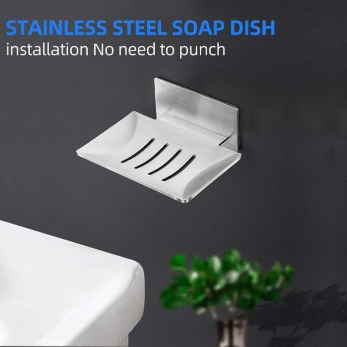KINCMAX Porte-savon autocollant pour douche – Porte-savon sans perçage pour salle de bain – Porte-savon de douche en acier inoxydable Yazoni Conner Shower Caddy 4-Pack, Étagères de Douche Adhésives avec... Porte-savon Auto-adhésif Support Salle Bain Sans Perçage Porte-Savon Adhésif Acier Inoxydable - Sans Perçage - 2 Crochets - Salle De Bain Et Cuisine Porte-savon Drainage Creux Porte Savon Cuisine Antidérapant 【Inoxydable et durable】Le support de savon auto-adhésif mural est en acier inoxydable 304 de haute qualité, résistant à la corrosion, aux rayures, à la rouille et durable. Ainsi, le savon reste sec et assure un lavage plus sain. Porte-Serviettes Sans Perçage En Acier Inoxydable Double Porte... 【Design à trous d'écoulement - Prévention de l'accumulation d'eau】Notre support de savon en acier inoxydable pour douche sans perçage dispose de plusieurs trous d'écoulement au fond pour éviter l'accumulation d'eau et le ramollissement des bulles de savon. Aucune perceuse ou masse adhésive supplémentaire n'est nécessaire, le mur n'est pas percé et après retrait, le mur est comme intact. 【Multifonction】Le porte-savon créatif sans perçage permet non seulement un stockage sûr du savon, mais aussi des téléphones portables, des serviettes en papier, des brosses de bain, etc. Le pad adhésif auto-adhésif doit être appliqué sur une surface lisse, propre et sèche, comme carrelage, verre, métal, etc.