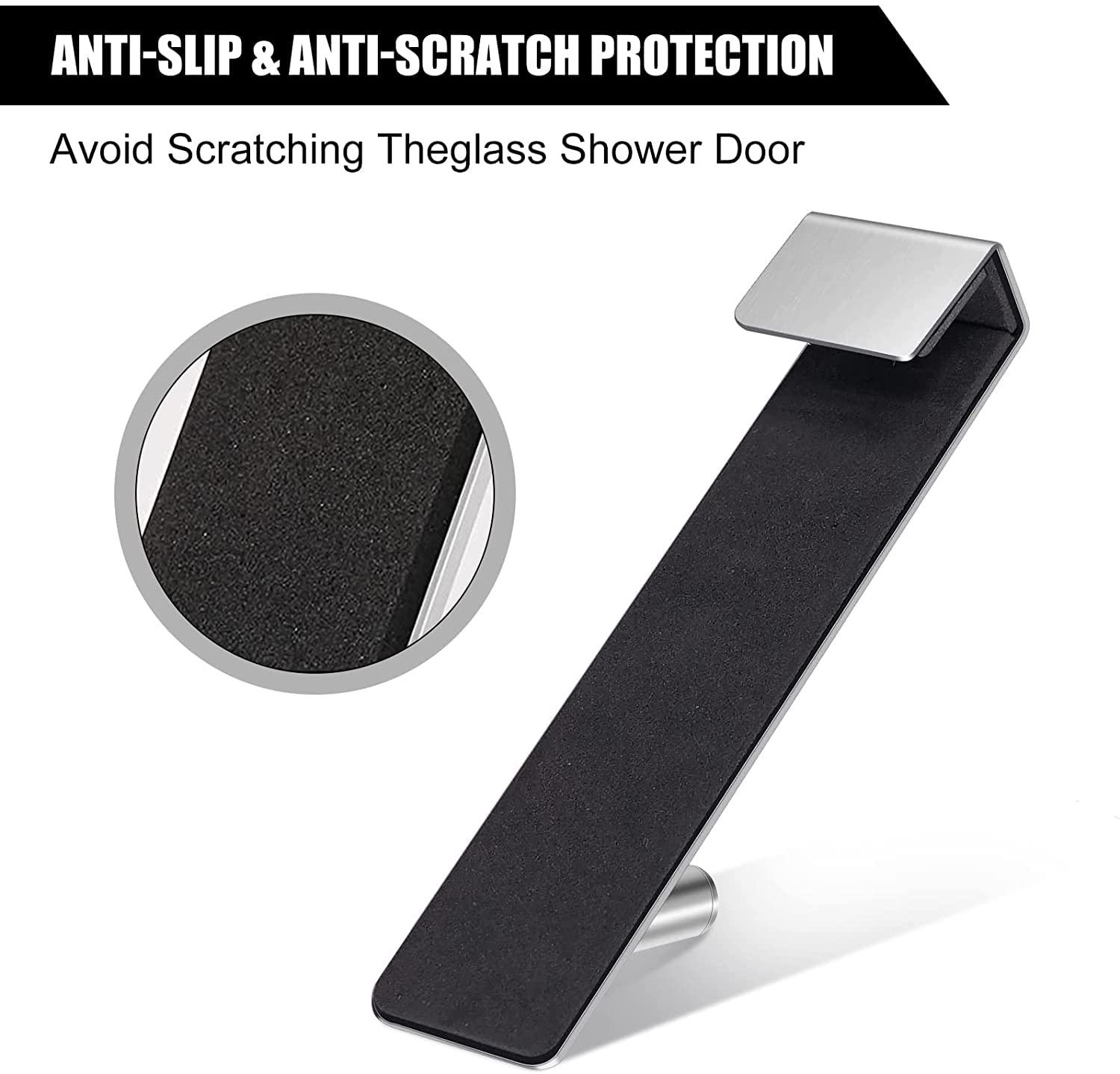 Veuillez vérifier les dimensions avant l'achat Porte Verre Salle De Bain Lot De 2 Crochets De Douche Sans Perçage Pour Paroi De Douche Avec 3 Anneaux En Silicone Pour Accroche Serviettes Cadre Porte Description: Fabriqué en acier inoxydable de haute qualité avec une surface lisse et brillante, ce crochet dispose d'un revêtement antirouille noir supplémentaire pour une meilleure résistance à la corrosion. Résistants aux rayures et silencieux] Les crochets pour porte de douche sont livrés avec un tampon éponge qui peut être fixé à l'arrière du crochet porte-serviettes pour protéger le verre des rayures et réduire le bruit. Idéal pour protéger votre précieux verre de douche - Quantité : 4 pièces - Convient pour : salles de bains, cuisines et environnements similaires - Caractéristiques : installation facile, améliore la décoration Retirer ou repositionner selon vos besoins pour une utilisation flexible Ahlsen Crochet de douche sans perçage - Crochet pour paroi de douche... - Dimensions : 13,5 x 2,5 cm., - Couleur : noir. En outre, le rembourrage offre une excellente adhérence et assure un maintien ferme du crochet sur les cadres de porte en verre. Protège les cadres de porte en verre : le dos rembourré empêche les dommages, les rayures et le bruit. Crochet De Porte Crochets De Porte De Douche,4 Piu00e8ces Accroche Caractéristiques du produit : - Nom du produit : crochet de porte en verre - Matériau : acier inoxydable. Utilisation polyvalente : idéal pour accrocher des serviettes, des éponges en loofa, des peignoirs, des serviettes, des vêtements, des manteaux et d'autres articles.