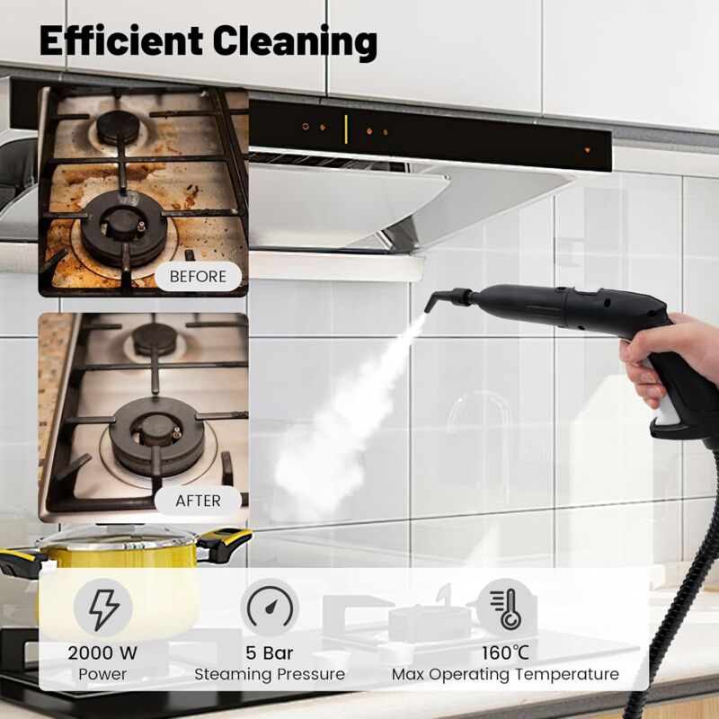 L'unité principale comprend une poignée de transport pratique et un bouchon de vidange inférieur pour faciliter l'évacuation de l'eau et le transport. Nettoyeur Vapeur Haute Pression Nettoyeur Vapeur 2500W, Conception Sans Réservoir D'eau, 4,5 Bar Nettoyer à Vapeur à Main Avec 3 Pour Cuisine Salle De Bain Salon Avec 6 niveaux de débit de vapeur réglables, il peut tout nettoyer, des tissus délicats aux résidus tenaces. Vous cherchez une solution vraiment efficace pour un nettoyage professionnel ? Le nettoyeur vapeur professionnel est sans doute l'équipement qu'il vous faut. Avec sa capacité à éliminer les saletés, les bactéries et les virus sans avoir recours aux produits chimiques, c’est l’outil parfait pour garantir un nettoyage en profondeur. Peu importe votre domaine (restauration, hôtellerie... Passez facilement d'une vapeur douce pour les tissus délicats à des jets puissants pour les résidus incrustés, le tout contrôlable directement depuis la poignée ou l'unité principale. 【Nettoyage à la vapeur puissant】 Équipé d'un moteur haute performance de 1500 W, notre nettoyeur vapeur produit une vapeur intense à haute température en seulement 10 secondes, atteignant jusqu'à 100 °C (212 °F) à une pression de 3 bars, ce qui lui permet d'éliminer sans effort la graisse, la saleté et les taches tenaces sur de multiples surfaces. Nettoyeur vapeur portable 2000 W - Chauffage rapide à une température élevée de 320 °C - Réservoir d'eau de 2 l - Nettoyeur vapeur manuel pour meubles de... Que ce soit pour nettoyer les salons, les salles de bains ou les cuisines, ce nettoyeur vapeur permet d'obtenir des résultats de niveau professionnel avec un minimum d'effort. Le réservoir d'eau de 1 400 ml permet jusqu'à 40 minutes d'utilisation continue, avec une protection contre le fonctionnement à sec pour plus de sécurité. La protection intégrée contre le fonctionnement à sec garantit un fonctionnement sûr en empêchant la surchauffe pendant l'utilisation. Top 10 Nettoyeurs à vapeur | Acheter des articles sur Les accessoires polyvalents inclus le rendent idéal pour le nettoyage de toute la maison. 【Solution complète de nettoyage pour toute la maison Livré avec 7 accessoires pratiques : tube d'extension, grattoir, brosse à repasser avec housse, raclette, brosse en laine d'acier et brosses en nylon et laiton.