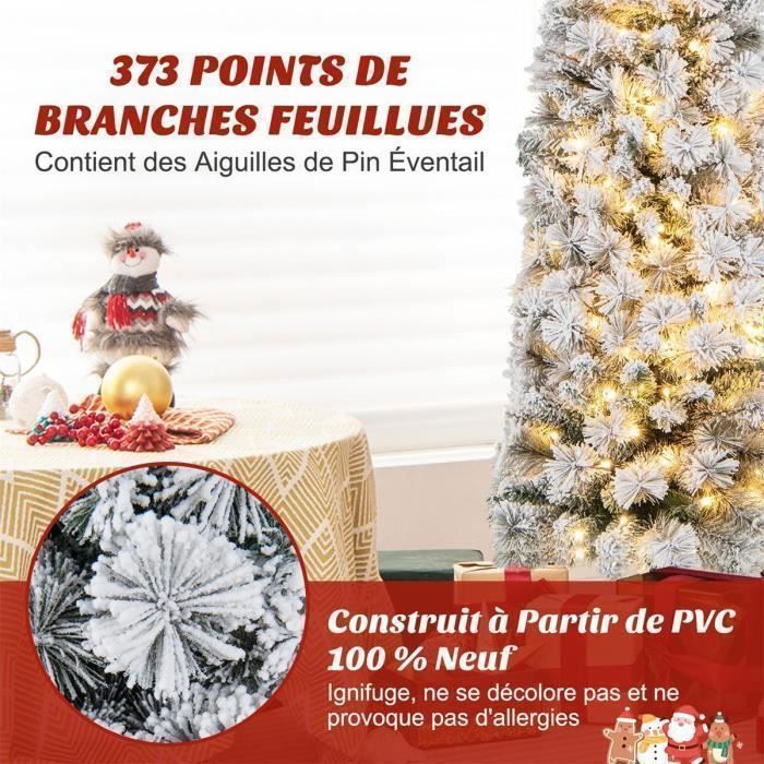 Contrairement aux vrais arbres, il reste vivant toute l'année et peut être une toile floquée pour votre créativité, pour correspondre à la saison hivernale. 🎁【Effets Lumineux Époustouflants :】Pour une ambiance magique, jusqu'à 250 lumières LED blanches chaudes sont incluses pour diffuser une lumière chaude et joyeuse à tous ceux qui contemplent le sapin de Noël. 🔔【Cadre Articulé Stable :】Dites adieu à l'installation complexe, le sapin de Noël est livré avec des connexions articulées qui permettent aux branches de s'ouvrir automatiquement. 🎄【Vitalité Toute l'Année :】Le sapin de Noël de 186 cm dispose de 752 branches qui mélangent astucieusement des feuilles en PE et des aiguilles de pin pour une simulation de haute qualité. Sapin de Noël LED 186 cm COSTWAY-Neige Blanche-250 Lumières 🎅【PVC & PE de Qualité Supérieure :】Conçu pour durer, le sapin de Noël est fabriqué en PVC résistant au feu et aux déformations. Caractéristiques : 752 branches floquées imitant un vrai arbre enneigé Les aiguilles de pin et le PE premium sont ignifuges, non allergènes et résistants à la déformation Les feuilles en PE de qualité supérieure ne se décolorent pas pour conserver un aspect vivant 250 lumières LED blanches chaudes sont économes en énergie, bien plus sûres et durables Connexion articulée pour l'expansion automatique des branches Décoration aimante au bureau, à la maison, dans les magasins, les centres commerciaux, les écoles et plus encore Une meilleure protection pour vos mains est assurée par une paire de gants Veuillez noter que les ornements ne sont pas inclus Spécifications : Couleur : Blanc & Vert Matériau : PE, Aiguilles de Pin, Floquage, Métal Hauteur de l'arbre : 186 cm Largeur de l'arbre : 120 cm Diamètre du pied : 46 cm Nombre de Sections : 3 Nombre de Branches : 752 Nombre de Lumières LED : 250 Poids Net : 10 kg Poids Brut : 12,5 kg Le Paquet Comprend : 1 x Sapin de Noël Artificiel 1 x Paire de Gants 1 x Guide de l'Utilisateur Sapin de Noël Artificiel LED 180CM COSTWAY-250 Lumières Blanc Chaud-Aiguilles PVC Floqué de Neige-Support Métallique-à Charnières ; 135 cm52,99 € ; 180 cm70,99... En passant, nous vous offrons une paire de gants pour protéger vos mains. Son matériau en PE garantit que ses couleurs restent vives et intactes, tout en étant exempt d'allergènes. De plus, vous pouvez profiter en toute tranquillité, car les lumières LED sont plus sûres, économes en énergie et durables. Sapin Maison Bureau Fête Sapin De Noël Artificiel De 180 Cm Sapin De Noël à Charnières Avec Sapin De Noel Lumineux Décoration vive peu encombrante :]Doté de 296/390 pointes de branches verdoyantes, l'arbre de Noël artificiel présente une apparence luxuriante et... Après les fêtes, il peut être facilement démonté en 3 sections pour un rangement compact.