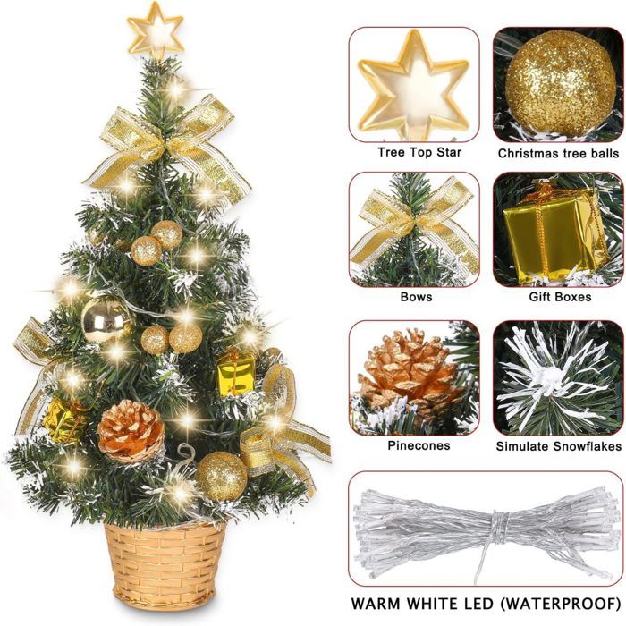Spécifications: Nom du produit : mini sapin de Noël. Veuillez lire attentivement les dimensions avant de commander, car elles sont mesurées à la main et il peut y avoir des écarts., 3., Si vous avez des questions sur le produit, vous pouvez nous contacter directement et nous serons heureux d'y répondre pour vous. Mini sapin de Noël artificiel pour un aspect coloré jour et nuit. C'est la décoration idéale pour les personnes qui vivent dans un petit appartement et ont besoin d'une atmosphère de Noël. Petit Sapin Artificiel, épicéa Naturel avec de la Mini Neige Hauteur de l'arbre : 40 cm Lumière : les guirlandes lumineuses LED construites de l'éclairage du sapin de Noël, faible consommation d'énergie, longue durée de vie., Remarque : 1., Pour les enfants, veuillez l'utiliser sous la surveillance d'un adulte pour éviter d'avaler accidentellement de petits accessoires. Sapin de Noël avec éclairage parfait comme centre de table ou complément décoratif à une table de chevet, un plan de travail ou un bureau grâce à son design compact. Petit sapin de Noël artificiel avec lumières, 40 cm - Mini sapin de bureau pré-décoré avec nœuds, boules et pomme de pin sur base tissée - Décoration de table... Décoration d'arbre de Noël : le sapin de Noël artificiel peut être utilisé dans les présentations, les modèles et les décorations de table de Noël pour créer une atmosphère festive et chaleureuse dans votre maison, appartement ou bureau, créant facilement une atmosphère romantique, paisible et chaleureuse, qui convient très bien au bureau., Cuisine, salon, table Il donne non seulement à votre maison une atmosphère festive, mais est également idéal comme beau cadeau pour les amis et la famille pour transmettre vos vœux de vacances. Mini sapin de Noël : ce mini sapin de Noël artificiel de 40 cm de haut avec guirlandes lumineuses LED. Sapin Bureau Sapin De Noel Mini Arbre De Noël Artificiel Miniature Decoration Table Sapin Lumineux Guirlande Idéal pour la maison, les comptoirs d'accueil en entreprise, les salles de classe et partout où vous souhaitez créer un morceau de Noël.Donnez à votre maison un air de fête avec notre mini sapin de Noël artificiel. D'une hauteur de 40 cm, ce sapin est idéal pour votre table ou votre bureau Petit sapin de Noël - Matériau : le sapin de Noël artificiel avec éclairage est fabriqué en PVC, la décoration de sapin de Noël a une bonne flexibilité et durabilité.