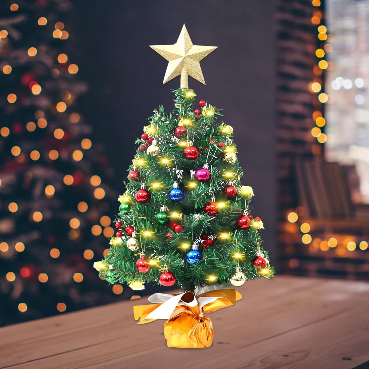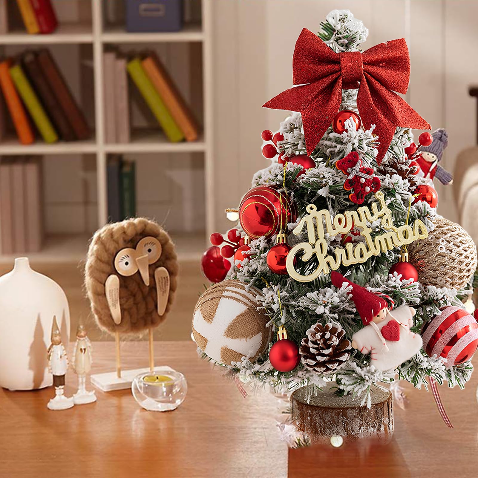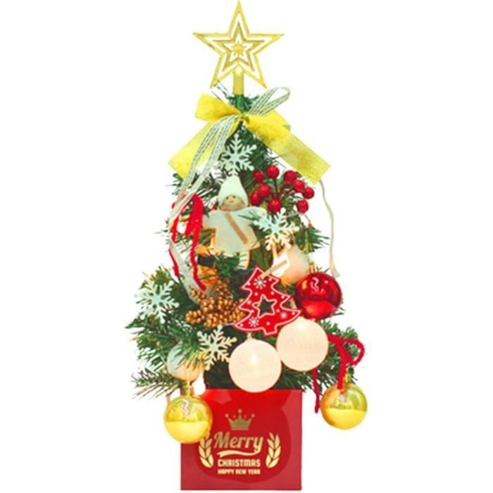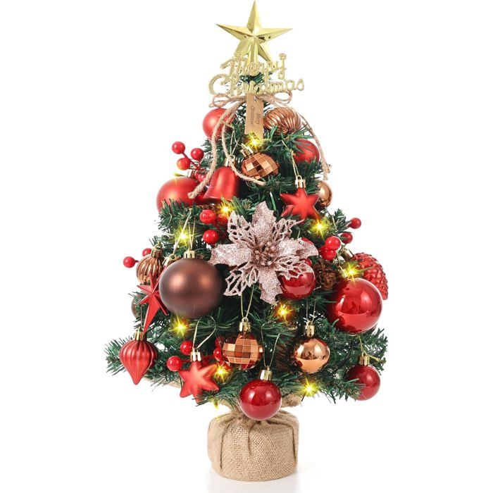 Petit Sapin De Noel FAOKZE Sapins De Noel Artificiel 45cm,Sapin De Noel Led,Sapin De Noel Lumineux,Mini Sapin Et Ornements Sapin Artificiel,Décoration De Noël Pour Table,pour Table Bureau Accueil Décoration (Rouge Et Or Sapin Artificiel PVC Décoration de fête - Autre - Mini sapin de Noël en PE - 45cm Sapin de Noël artificiel 45 cm, petit sapin de Noël avec lumières et ornements LED, mini sapin de Noël, sapin de Noël artificiel, pour Noël, fête, décoration... Les 30 LED blanc chaud produisent une lumière douce et festive et sont alimentées par 3 piles AA (non incluses). La base du sapin de Noël est enveloppée de lin naturel, le sapin de Noël artificiel est réutilisable. [Installation facile] : il suffit de retirer le sapin de Noël, d'étaler les branches et d'accrocher des décorations de Noël et des guirlandes lumineuses LED à votre guise. Choisissez nos arbres artificiels de qualité supérieure, décorés de boules rouges et dorées et de pommes de pin pour créer une ambiance joyeuse et scintillante du Nouvel An Veuillez suivre les étapes suivantes pour décorer les mini arbres de Noël : 1., Ouvrez l'emballage pour vérifier si les accessoires sont complets., 2., Veuillez préparer 3 piles AA à l'avance et les insérer dans le compartiment à piles de la lampe LED et allumer l'interrupteur pour vérifier si la lampe LED peut fonctionner (le produit ne contient pas de piles)., 3., Élargissez les branches et les feuilles de l'arbre et ajustez-les pour qu'il soit plein 4., Accrochez les boules de Noël et autres ornements sur l'arbre et installez la lampe LED. Créez un sapin de Noël avec votre famille, vos enfants et vos proches et passez ensemble un Noël chaleureux, joyeux et doux. [Table Sapin de Noël] : le mini sapin de Noël crée facilement une ambiance de Noël. Il est idéal pour créer une atmosphère festive. Décoration d'intérieur polyvalente : Ce petit sapin de Noël est parfait pour décorer l'intérieur de Noël et s'intègre parfaitement à une grande variété d'espaces, des tables de salon et comptoirs de cuisine aux bureaux et étagères d'entrée